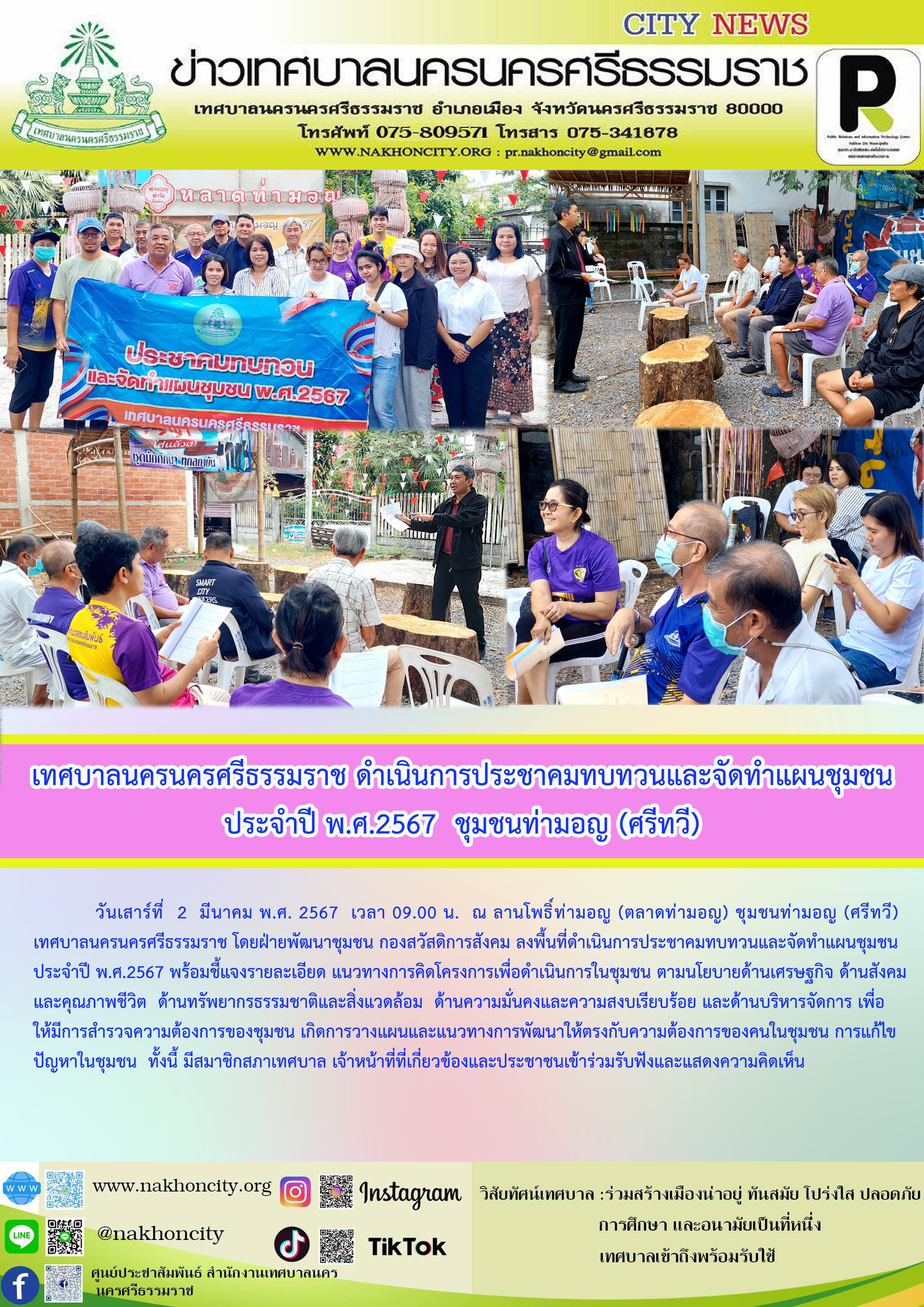| เทศบาลนครนครศรีธรรมราช ดำเนินการประชาคมทบทวนและจัดทำแผนชุมชน ประจำปี พ.ศ.2567 ชุมชนท่ามอญ (ศรีทวี) |