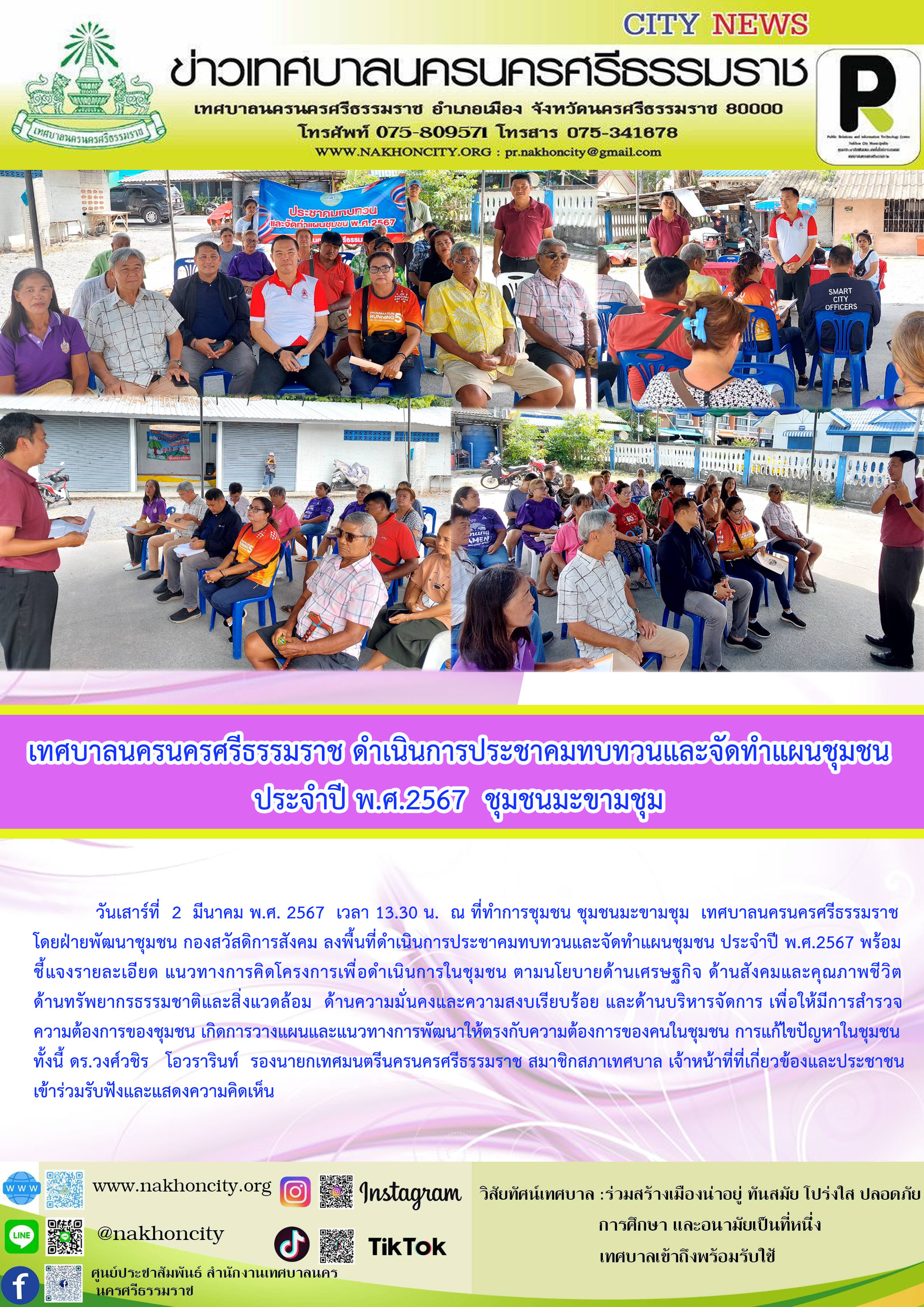 | เทศบาลนครนครศรีธรรมราช ดำเนินการประชาคมทบทวนและจัดทำแผนชุมชน ประจำปี พ.ศ.2567 ชุมชนมะขามชุม |