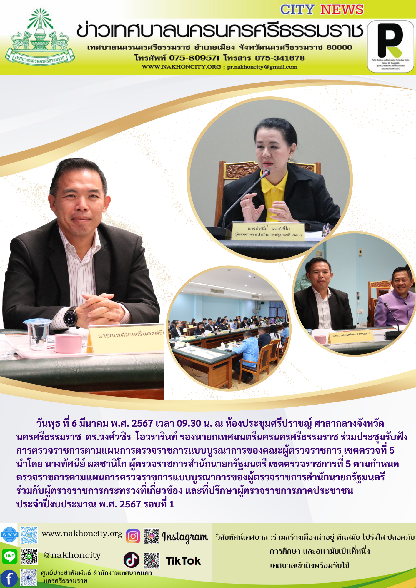 | วันพุธที่ 6 มีนาคม พ.ศ. 2567 เวลา 09.30 น. ณ ห้องประชุมศรีปราชญ์ ศาลากลางจังหวัดนครศรีธรรมราช