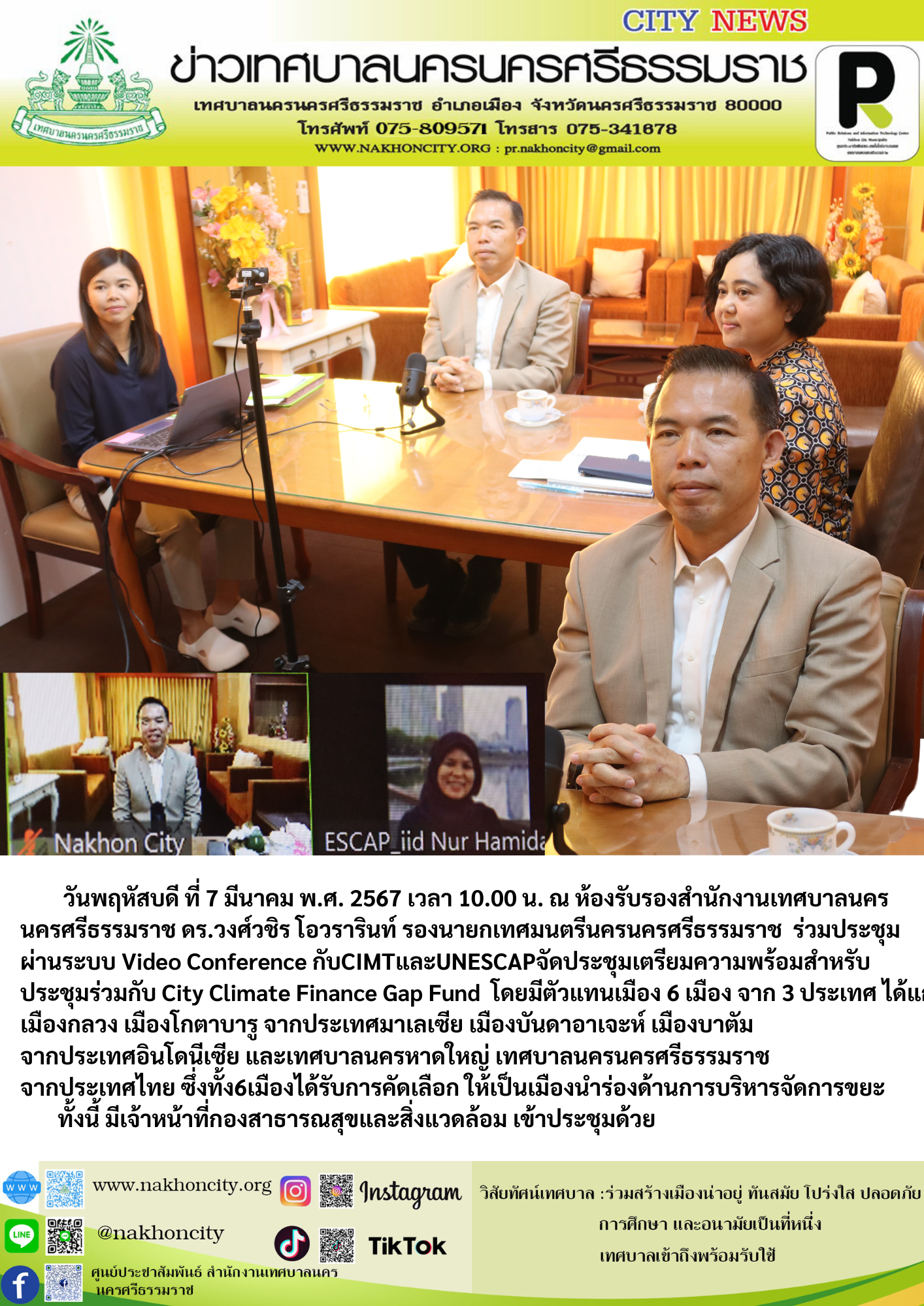 | ดร.วงศ์วชิร โอวรารินท์ รองนายกเทศมนตรีนครนครศรีธรรมราช ร่วมประชุมผ่านระบบ Video Conference กับCIMTและUNESCAP |