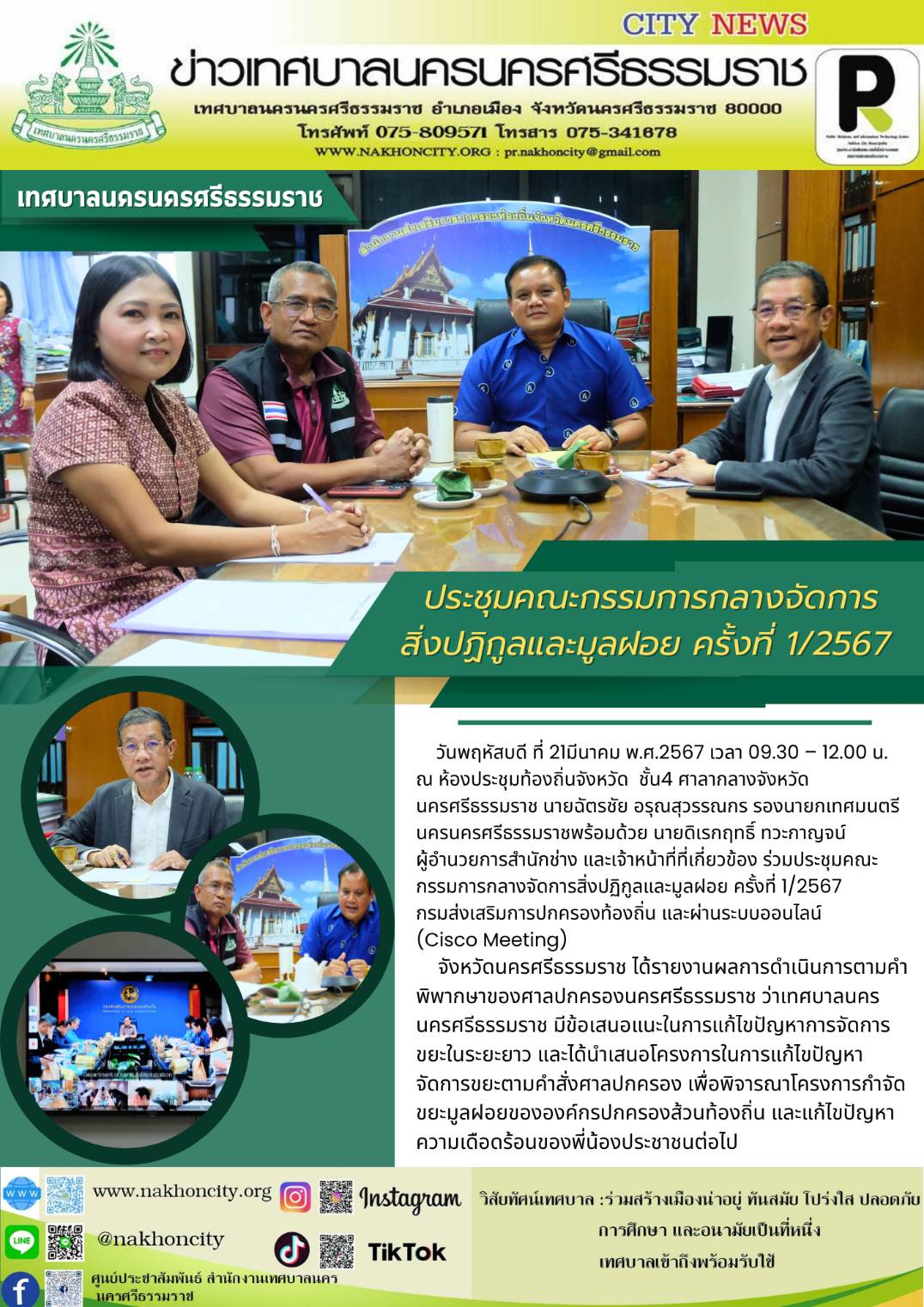 | นายฉัตรชัย อรุณสุวรรณกร รองนายกเทศมนตรีนครนครศรีธรรมราช พร้อมด้วย นายดิเรกฤทธิ์ ทวะกาญจน์ ผู้อำนวยการสำนักช่าง ร่วมประชุมคณะกรรมการกลางจัดการสิ่งปฏิกูลและมูลฝอย ครั้งที่ 1/2567 |