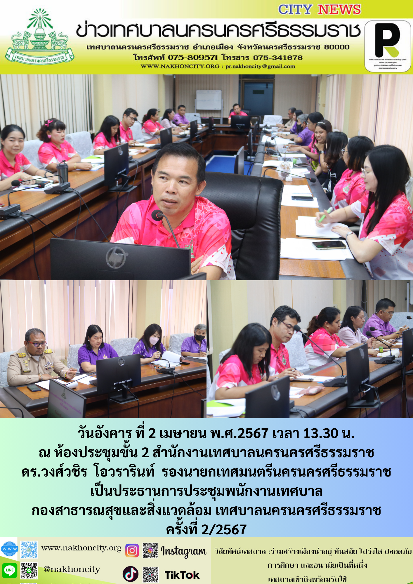 | ดร.วงศ์วชิร โอวรารินท์ รองนายกเทศมนตรีนครนครศรีธรรมราช เป็นประธานการประชุมพนักงานเทศบาล กองสาธารณสุขและสิ่งแวดล้อม เทศบาลนครนครศรีธรรมราช ครั้งที่ 2/2567 |
