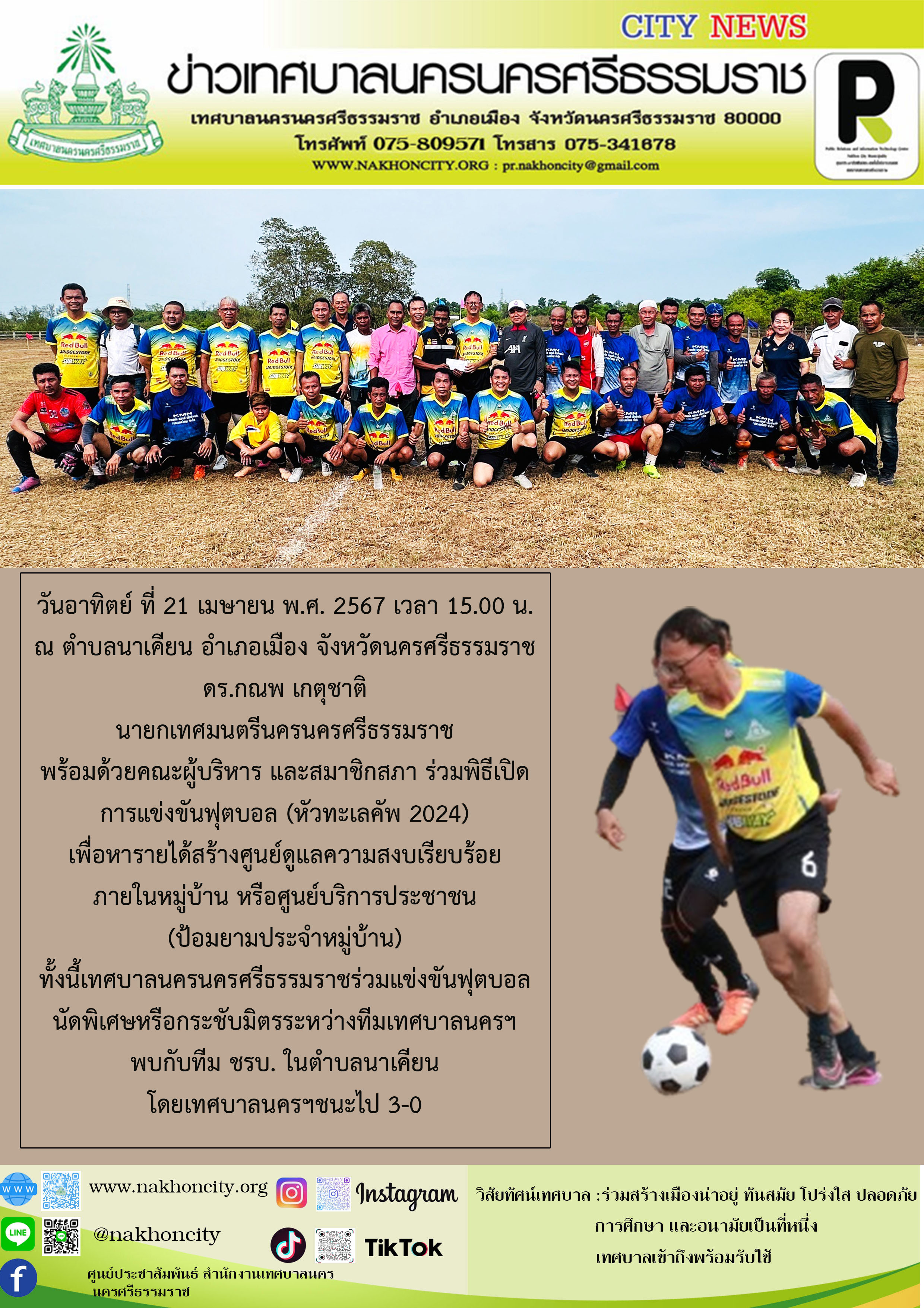 | ดร.กณพ เกตุชาติ นายกเทศมนตรีนครนครศรีธรรมราช พร้อมด้วยคณะผู้บริหาร และสมาชิกสภา ร่วมพิธีเปิดการแข่งขันฟุตบอล (หัวทะเลคัพ 2024) |