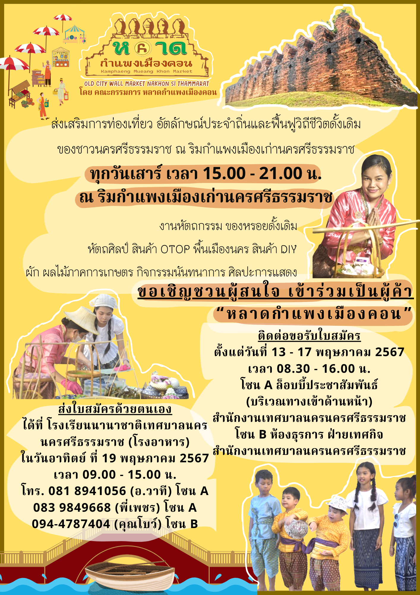 | ฝ่ายส่งเสริมการท่องเที่ยว เทศบาลนครนครศรีธรรมราช ขอเชิญชวนผู้สนใจ เข้าร่วมเป็นผู้ค้า หลาดกำแพงเมืองคอน