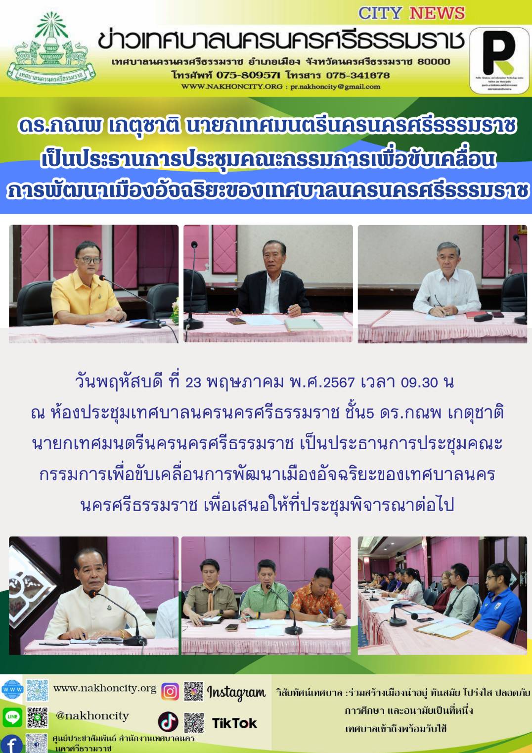 | ดร.กณพ เกตุชาติ นายกเทศมนตรีนครนครศรีธรรมราช เป็นประธานการประชุมคณะกรรมการเพื่อขับเคลื่อนการพัฒนาเมืองอัจฉริยะของเทศบาลนครนครศรีธรรมราช |