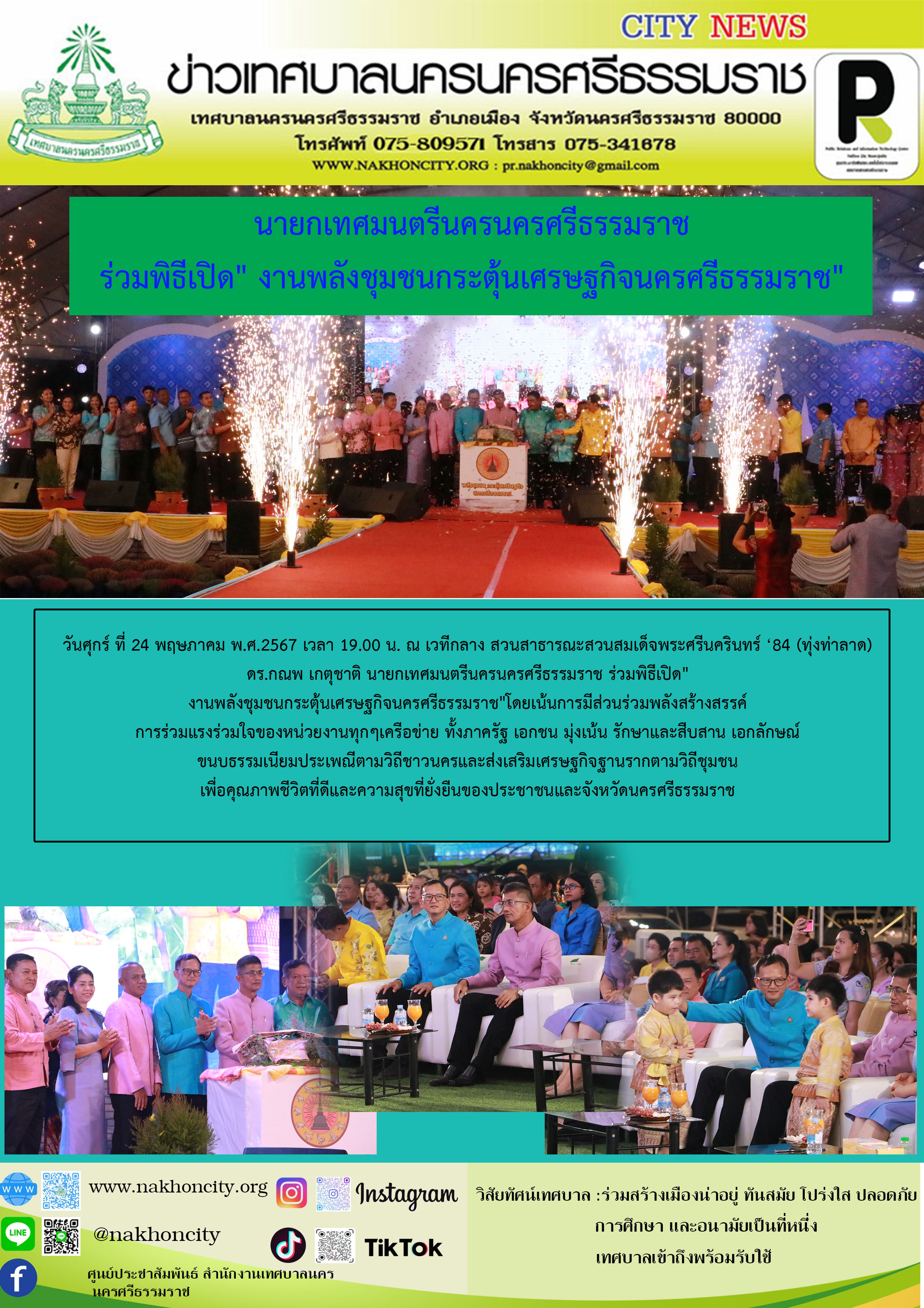 | นายกเทศมนตรีนครนครศรีธรรมราช ร่วมพิธีเปิด" งานพลังชุมชนกระตุ้นเศรษฐกิจนครศรีธรรมราช" |