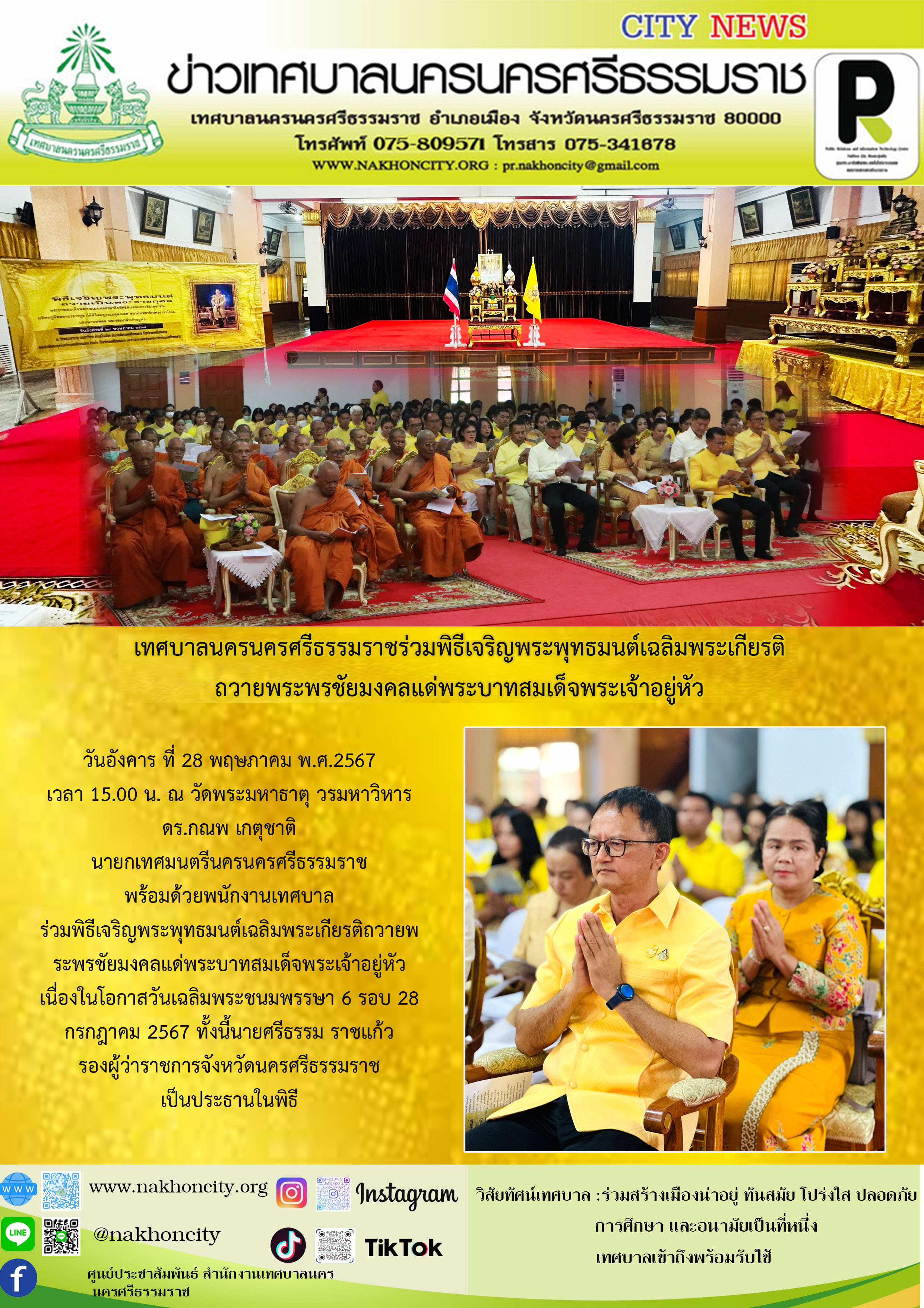 | เทศบาลนครนครศรีธรรมราชร่วมพิธีเจริญพระพุทธมนต์เฉลิมพระเกียรติถวายพระพรชัยมงคลแด่พระบาทสมเด็จพระเจ้าอยู่หัว |