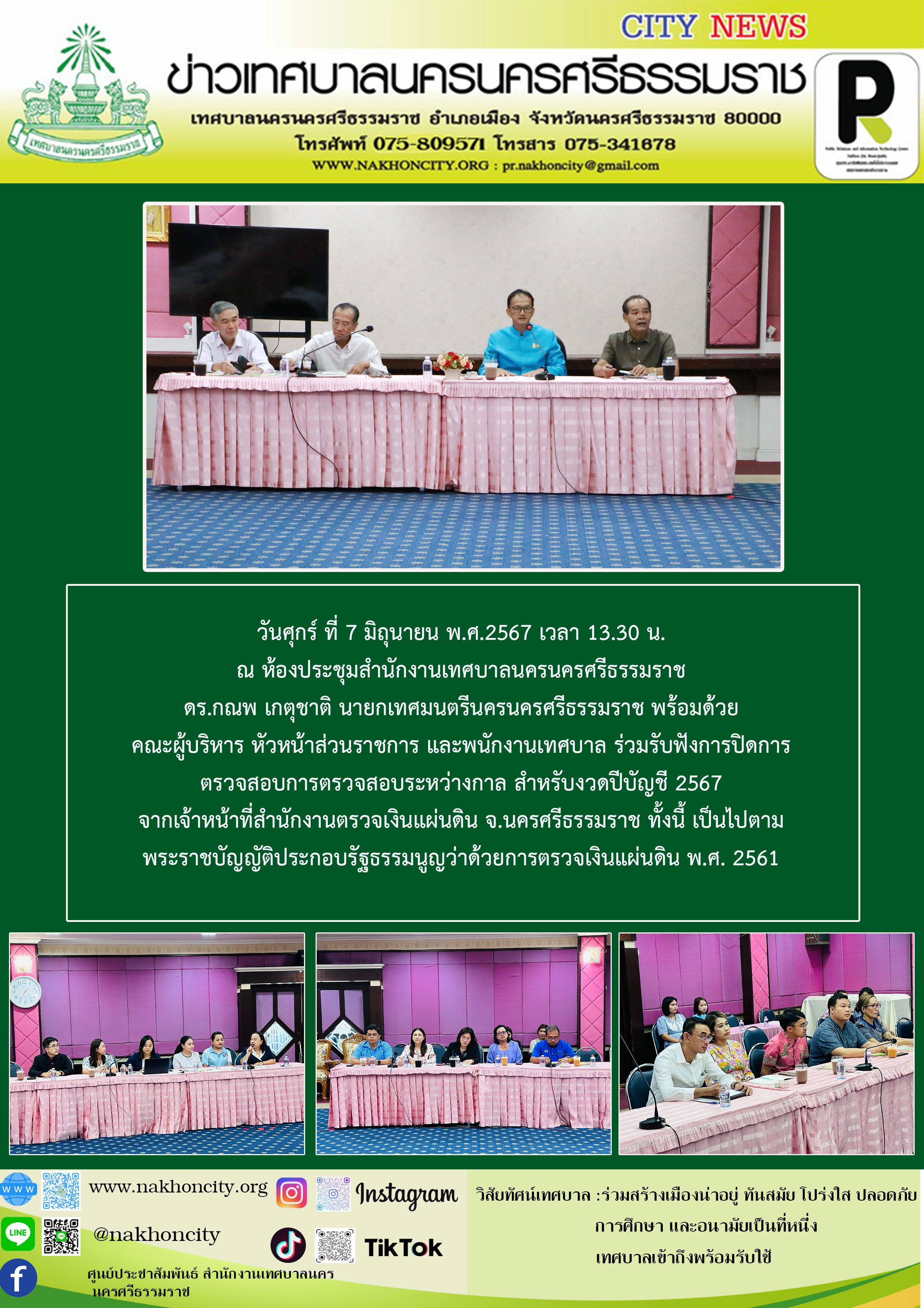 | นายกเทศมนตรีนครนครศรีธรรมราช พร้อมด้วยคณะผู้บริหาร หัวหน้าส่วนราชการ และพนักงานเทศบาล ร่วมรับฟังการปิดการ ตรวจสอบการตรวจสอบระหว่างกาล สำหรับงวดปีบัญชี 2567 |