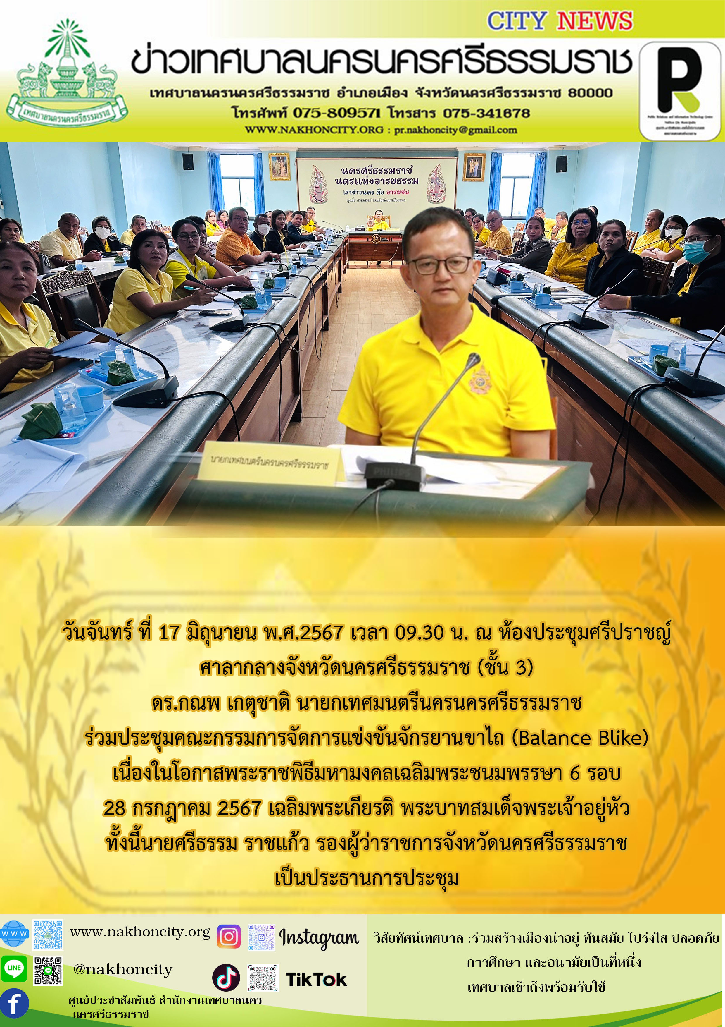 | นายกเทศมนตรีนครนครศรีธรรมราช ร่วมประชุมคณะกรรมการจัดการแข่งขันจักรยานขาไถ (Balance Blike) |