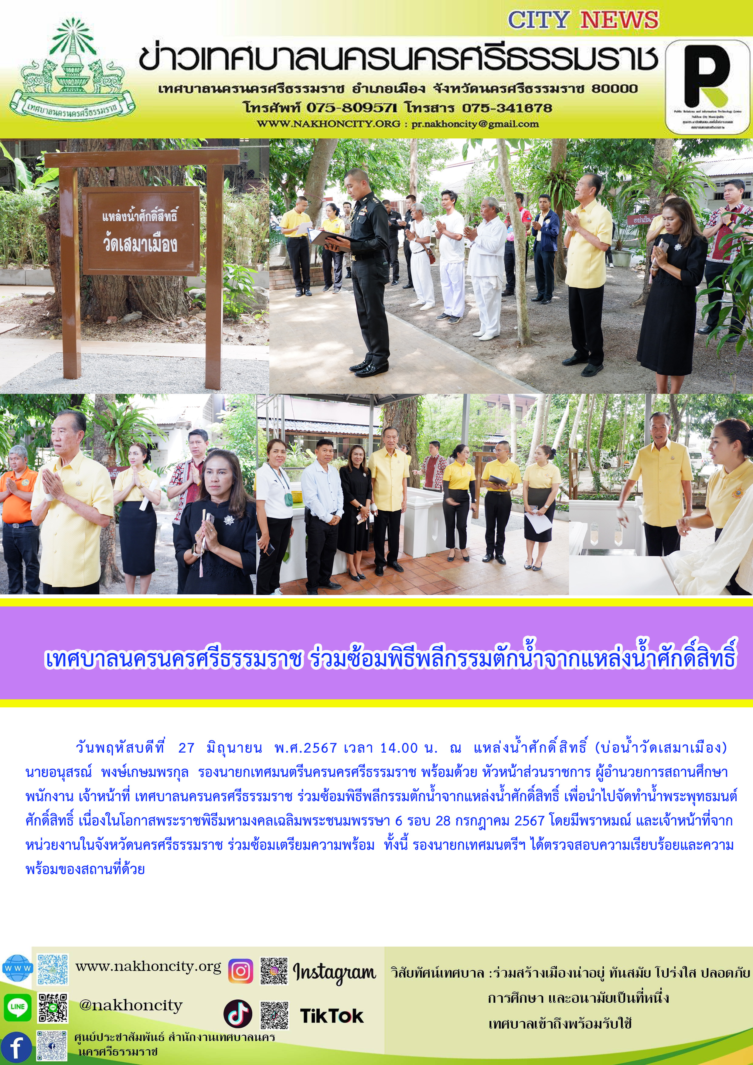 | เทศบาลนครนครศรีธรรมราช ร่วมซ้อมพิธีพลีกรรมตักน้ำจากแหล่งน้ำศักดิ์สิทธิ์ |