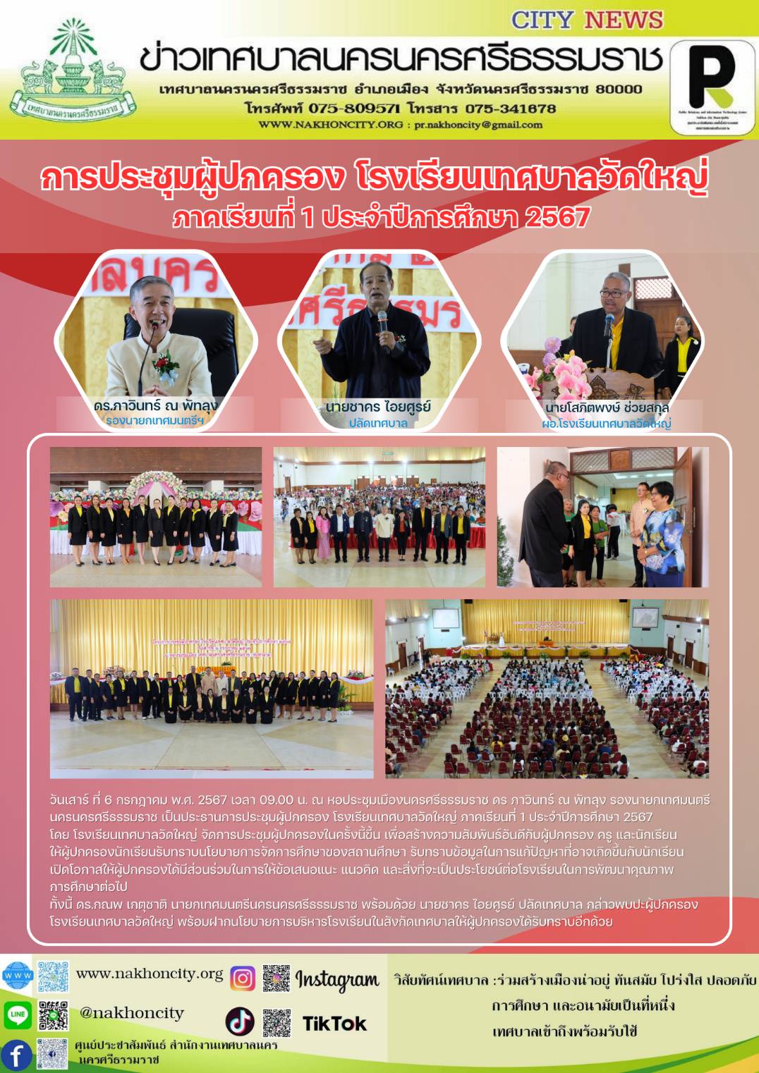 | ดร ภาวินทร์ ณ พัทลุง รองนายกเทศมนตรีนครนครศรีธรรมราช เป็นประธานการประชุมผู้ปกครอง โรงเรียนเทศบาลวัดใหญ่ ภาคเรียนที่ 1 ประจำปีการศึกษา 2567 |