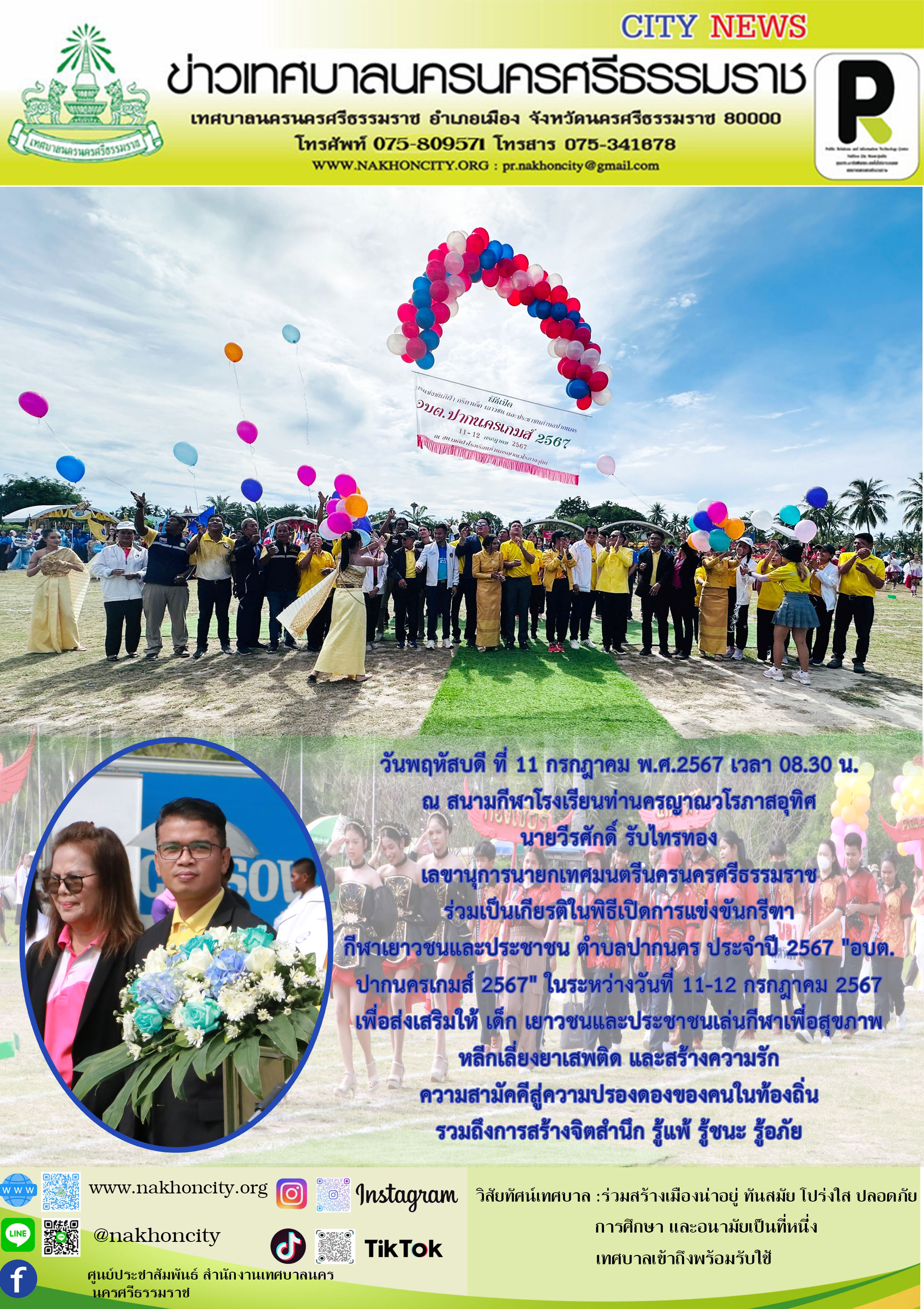 | เลขานุการนายกเทศมนตรีนครนครศรีธรรมราช ร่วมเป็นเกียรติในพิธีเปิดการแข่งขันกรีฑา กีฬาเยาวชนและประชาชน ตำบลปากนคร ประจำปี 2567 "อบต. ปากนครเกมส์ 2567" |