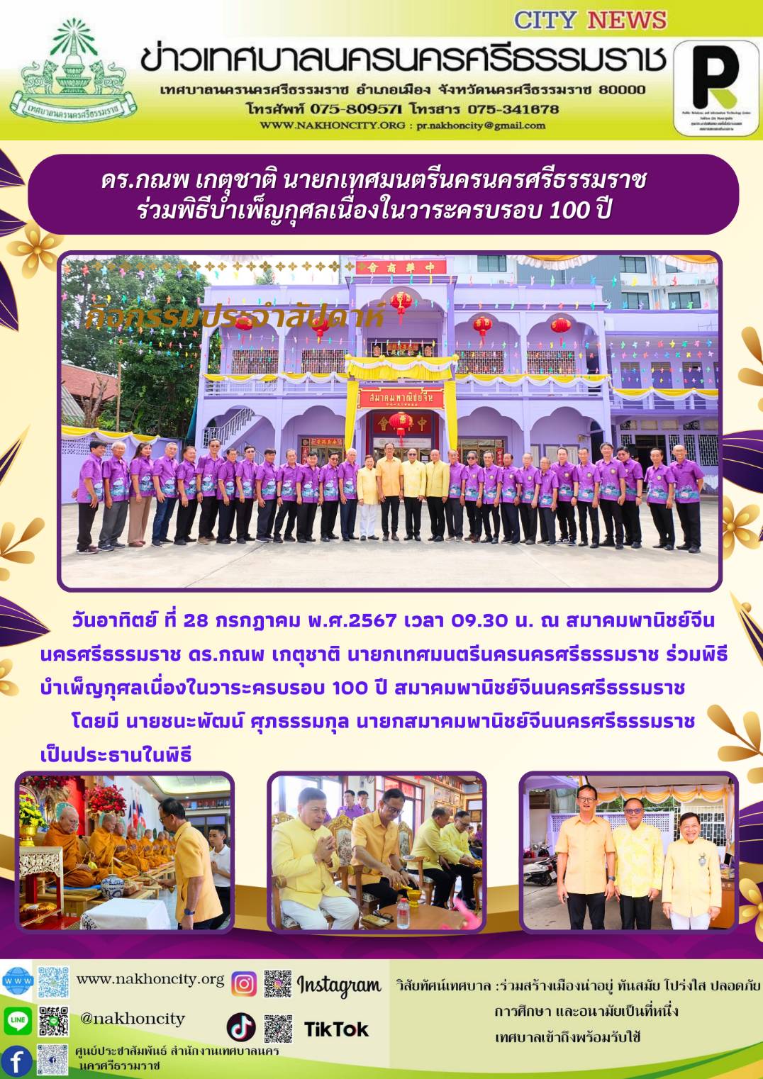 | ดร.กณพ เกตุชาติ นายกเทศมนตรีนครนครศรีธรรมราช ร่วมพิธีบำเพ็ญกุศลเนื่องในวาระครบรอบ 100 ปี สมาคมพานิชย์จีนนครศรีธรรมราช |