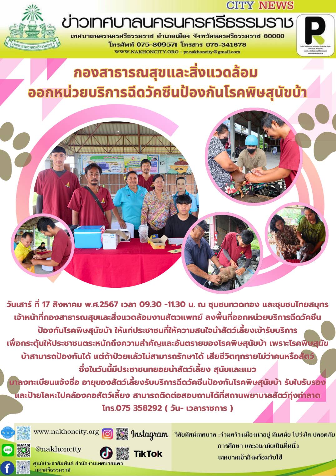 | เจ้าหน้าที่กองสาธารณสุขและสิ่งแวดล้อมงานสัตวแพทย์ ลงพื้นที่ออกหน่วยบริการฉีดวัคซีนป้องกันโรคพิษสุนัขบ้า |