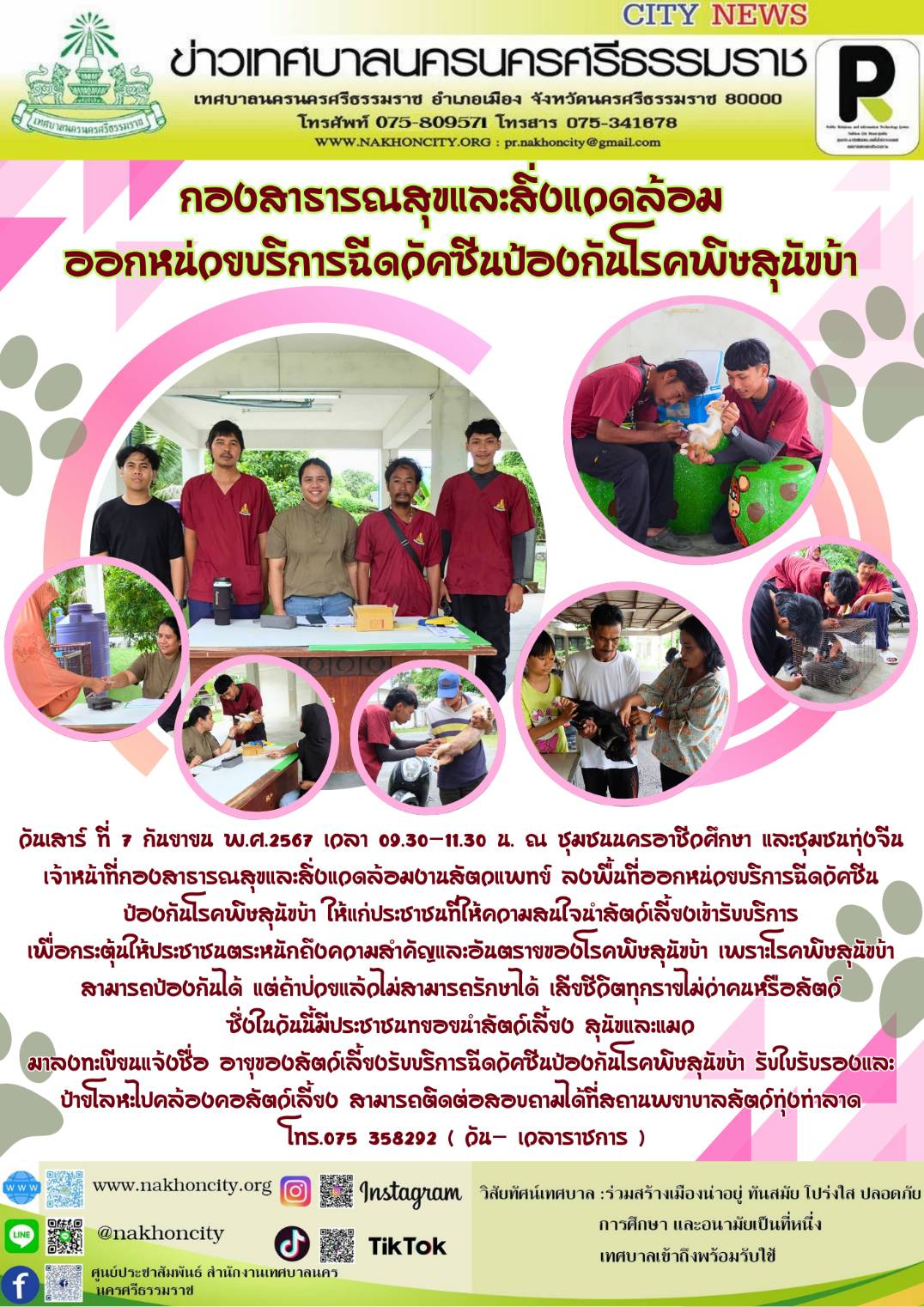 | เจ้าหน้าที่กองสาธารณสุขและสิ่งแวดล้อมงานสัตวแพทย์ ลงพื้นที่ออกหน่วยบริการฉีดวัคซีนป้องกันโรคพิษสุนัขบ้า |