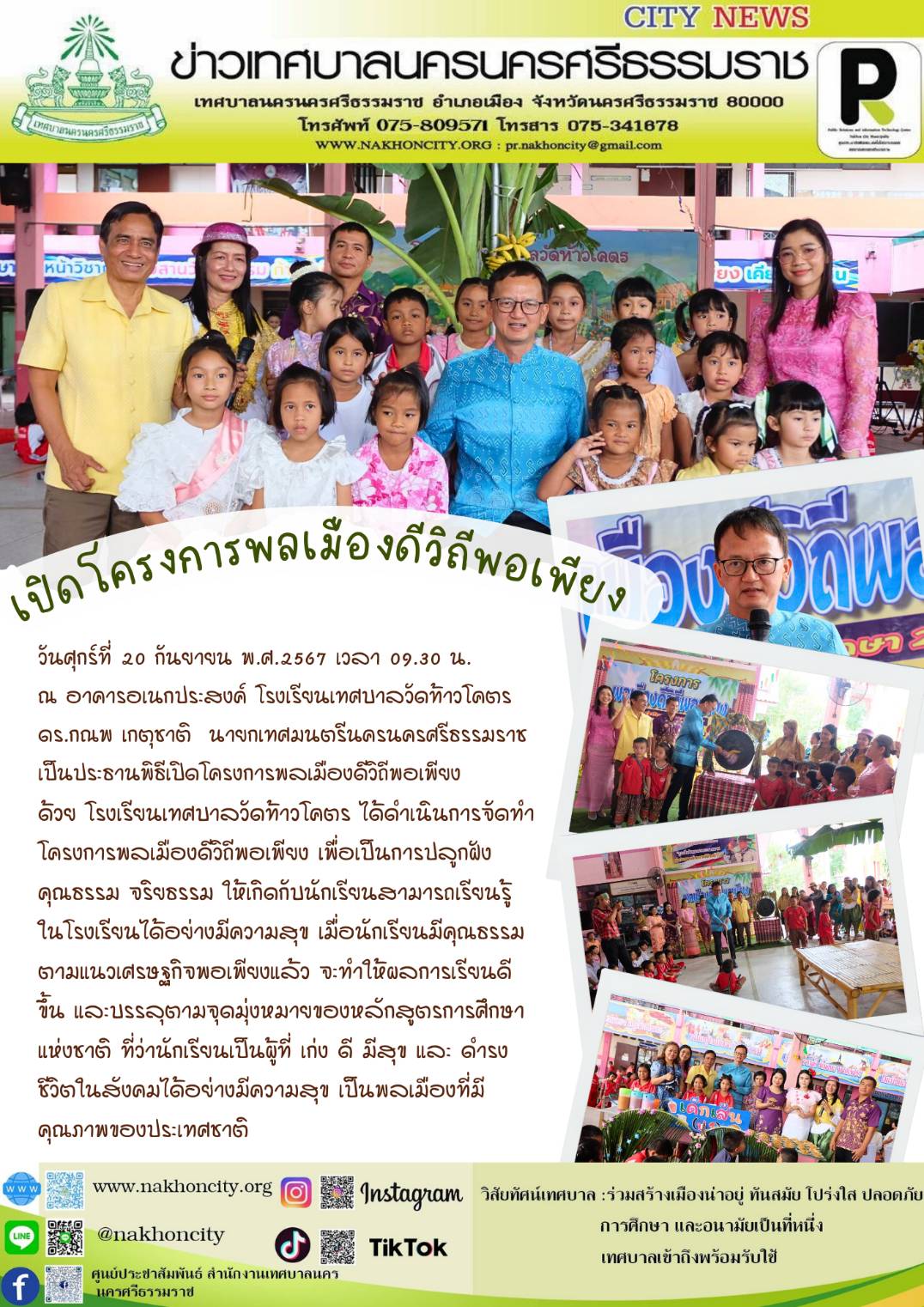 | ดร.กณพ เกตุชาติ นายกเทศมนตรีนครนครศรีธรรมราช เป็นประธานพิธีเปิดโครงการพลเมืองดีวิถีพอเพียง โรงเรียนเทศบาลวัดท้าวโคตร |
