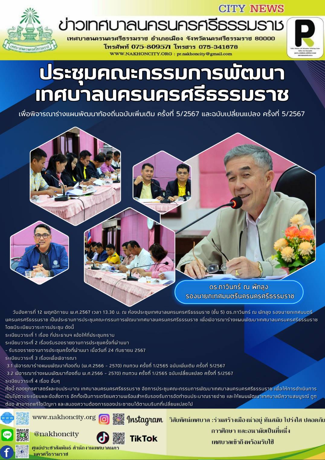 | ดร.ภาวินทร์ ณ พัทลุง รองนายกเทศมนตรีนครนครศรีธรรมราช เป็นประธานการประชุมคณะกรรมการพัฒนาเทศบาลนครนครศรีธรรมราช |