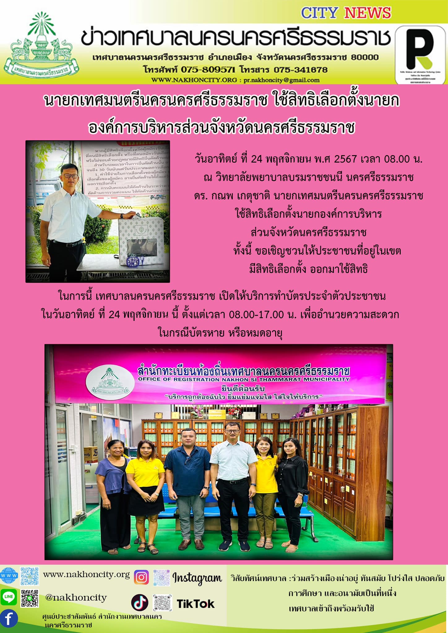 | วันจันทร์ที่ 25 พฤศจิกายน พ.ศ. 2567 เวลา 10.00 น. ณ ห้องประชุมชั้น 2 สำนักงานเทศบาลนครนครศรีธรรมราช นางวาสนา รัจรัญ รองปลัดเทศบาล เป็นประธานการประชุมคณะทำงานการบริหารจัดการความเสี่ยง เพื่อพิจารณา-ร่าง- แผนการบริหารจัดการความเสี่ยง ประจำปีงบประมาณ พ.ศ.2568 |