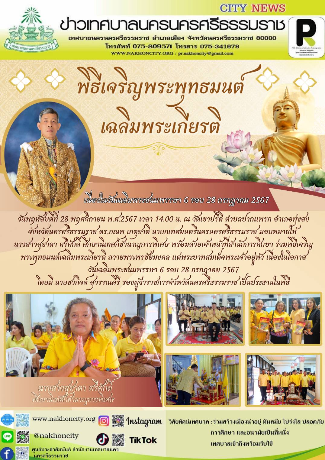 | เทศบาลนครนครศรีธรรมราช ร่วมพิธีเจริญพระพุทธมนต์เฉลิมพระเกียรติ ถวายพระพรชัยมงคล แด่พระบาทสมเด็จพระเจ้าอยู่หัว |