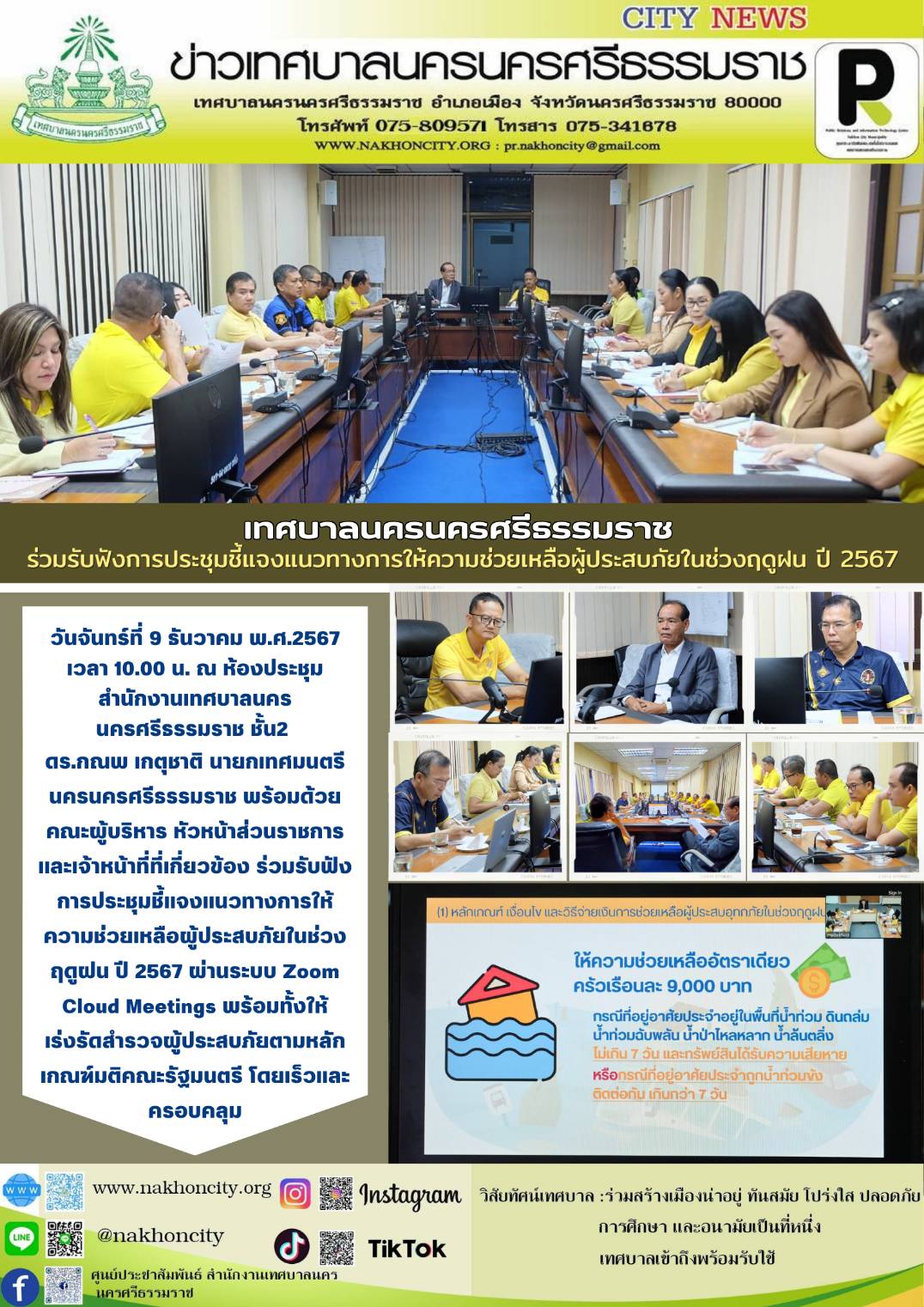 | เทศบาลนครนครศรีธรรมราช เกี่ยวข้อง ร่วมรับฟังการประชุมชี้แจงแนวทางการให้ความช่วยเหลือผู้ประสบภัยในช่วงฤดูฝน ปี 2567 |