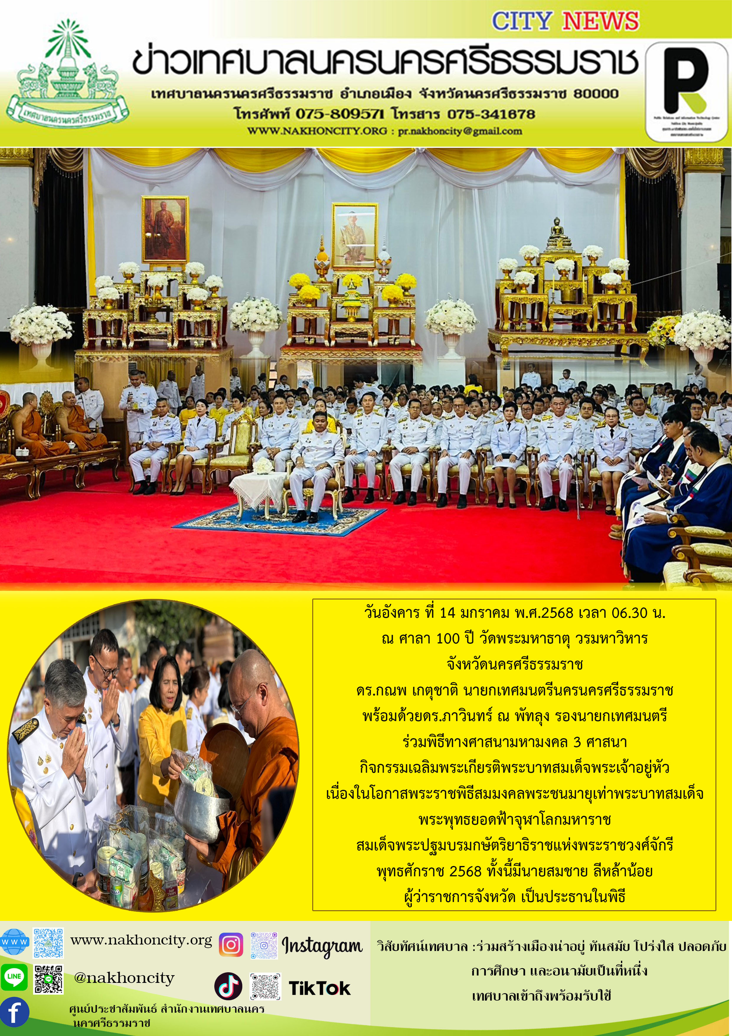 | นายกเทศมนตรีนครนครศรีธรรมราช พร้อมด้วย รองนายกเทศมนตรี ร่วมพิธีทางศาสนามหามงคล 3 ศาสนา กิจกรรมเฉลิมพระเกียรติพระบาทสมเด็จพระเจ้าอยู่หัว |