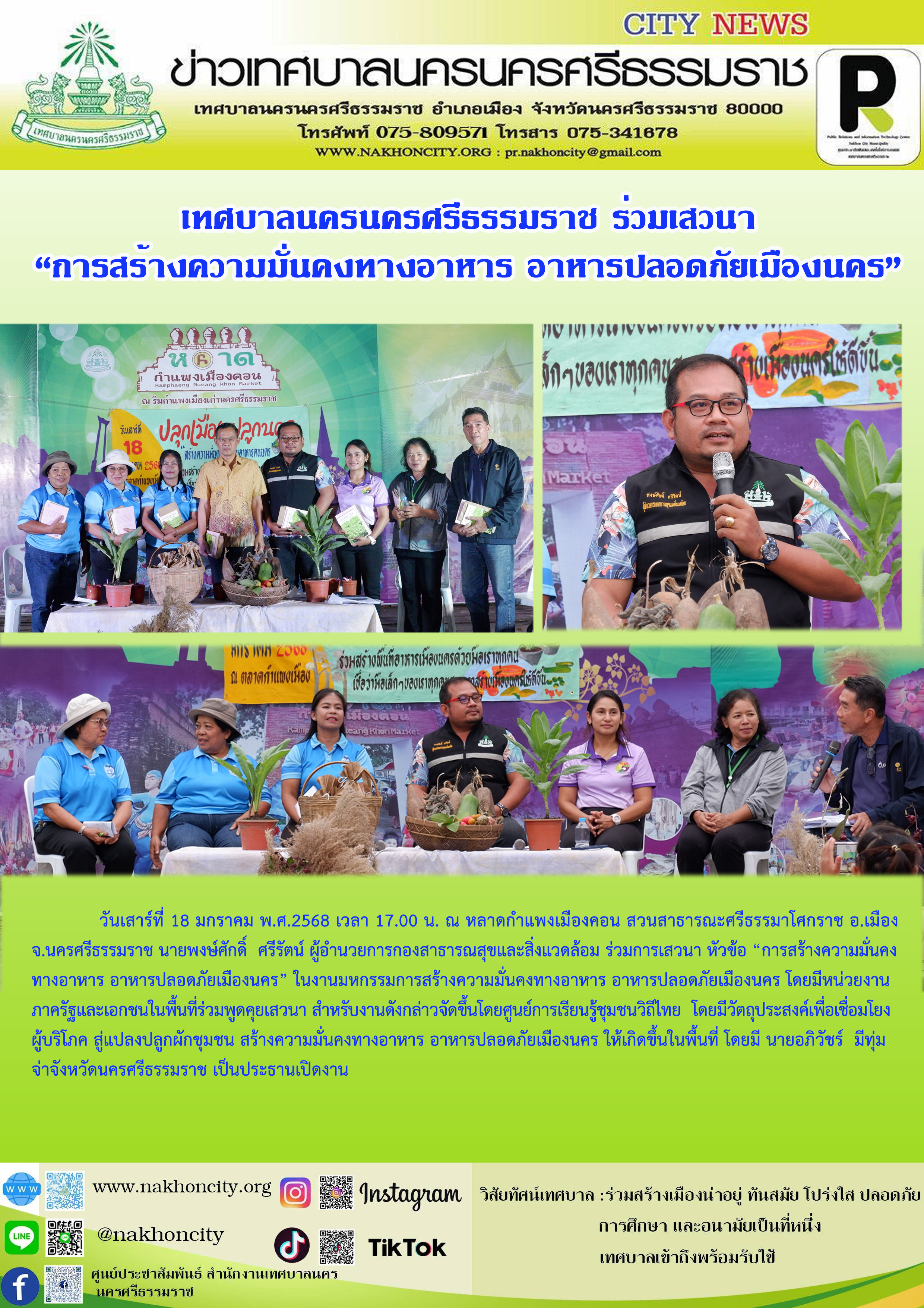 | เทศบาลนครนครศรีธรรมราช ร่วมเสวนาการสร้างความมั่นคงทางอาหาร อาหารปลอดภัยเมืองนคร |