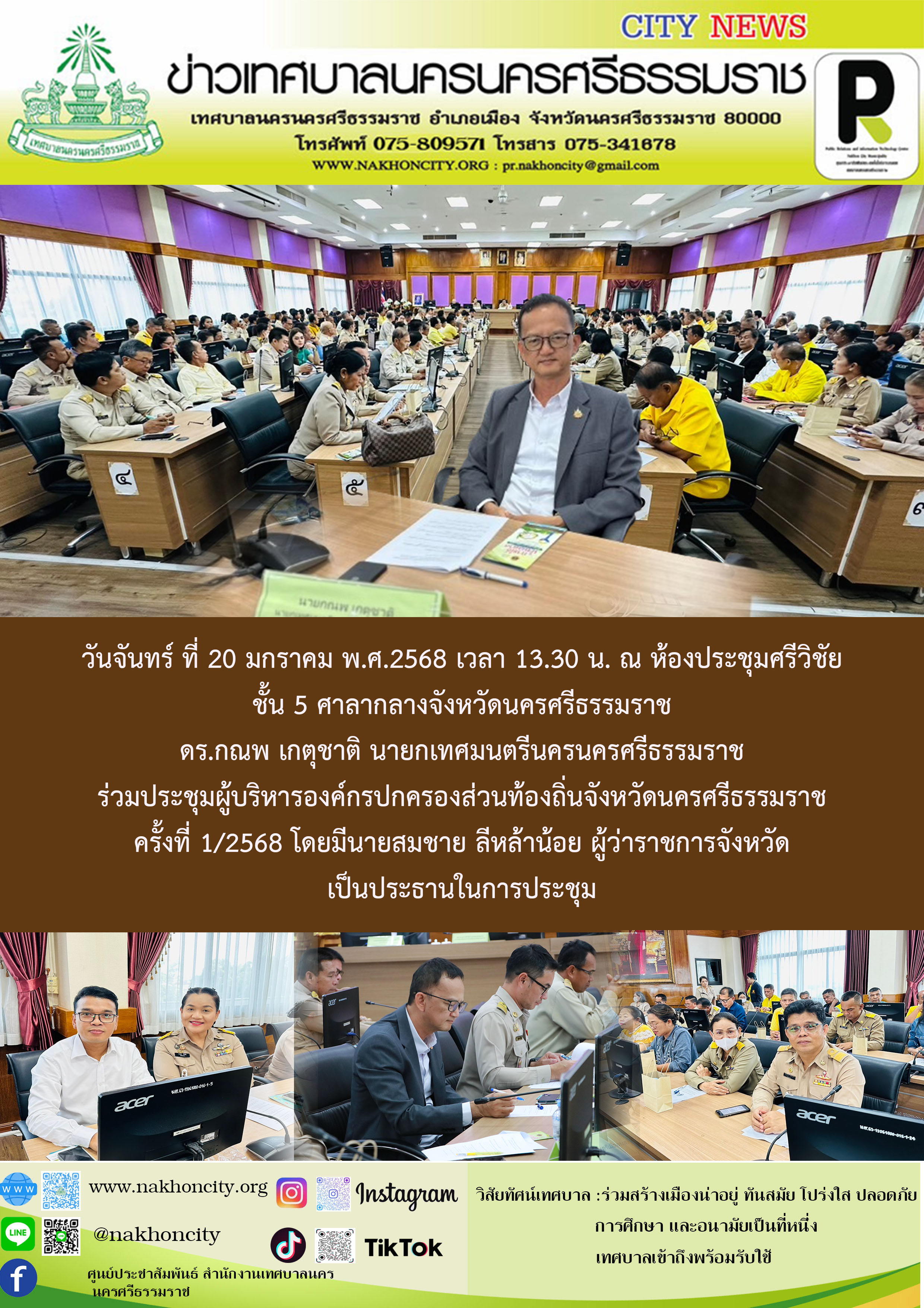 | นายกเทศมนตรีนครนครศรีธรรมราช ร่วมประชุมผู้บริหารองค์กรปกครองส่วนท้องถิ่นจังหวัดนครศรีธรรมราช ครั้งที่ 1/2568 |