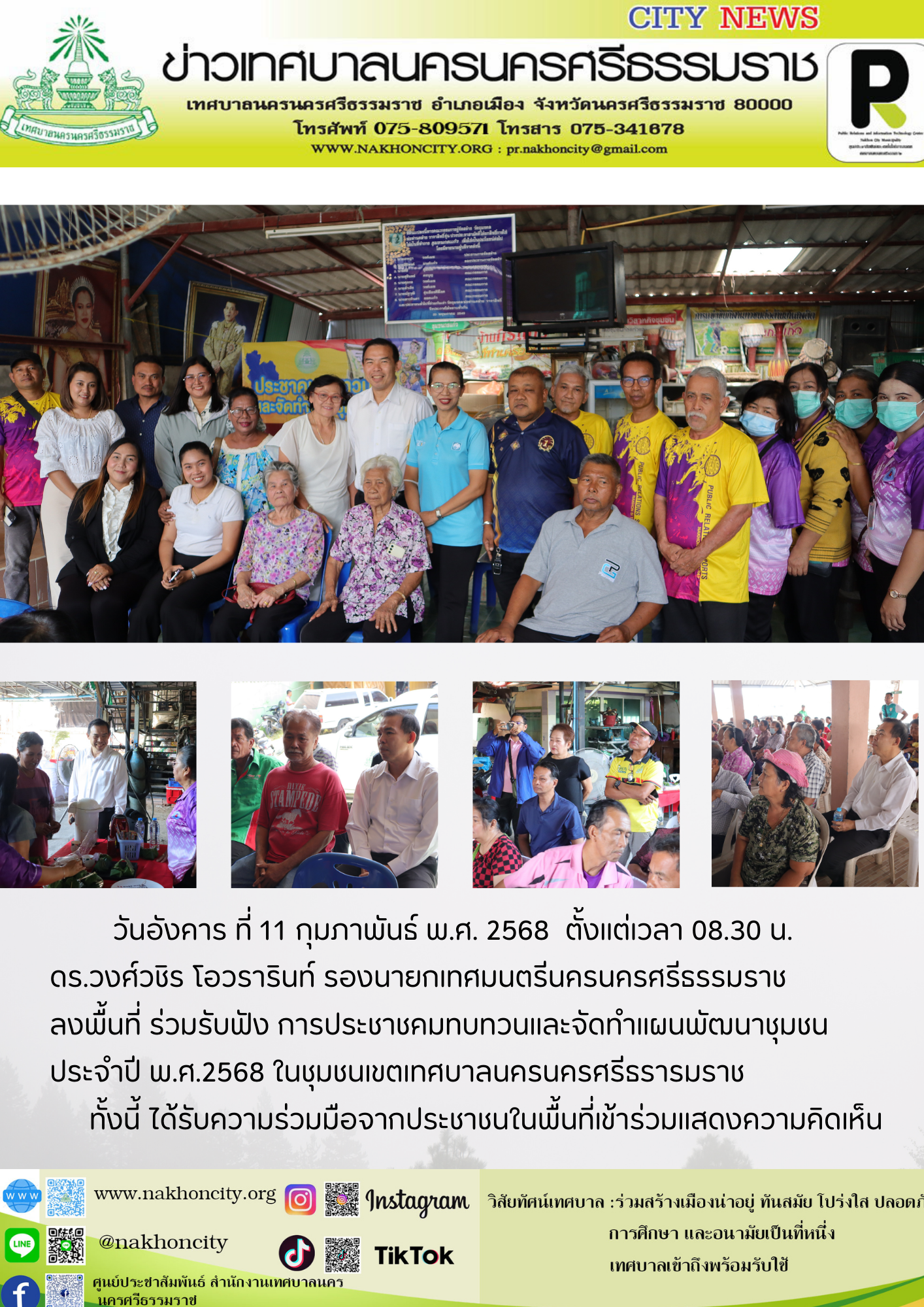 | ดร.วงศ์วชิร โอวรารินท์ รองนายกเทศมนตรีนครนครศรีธรรมราช ลงพื้นที่ ร่วมรับฟัง การประชาชคมทบทวนและจัดทำแผนพัฒนาชุมชน ประจำปี พ.ศ.2568 ชุมชนในเขตเทศบาลนครนครศรีธรารมราช |