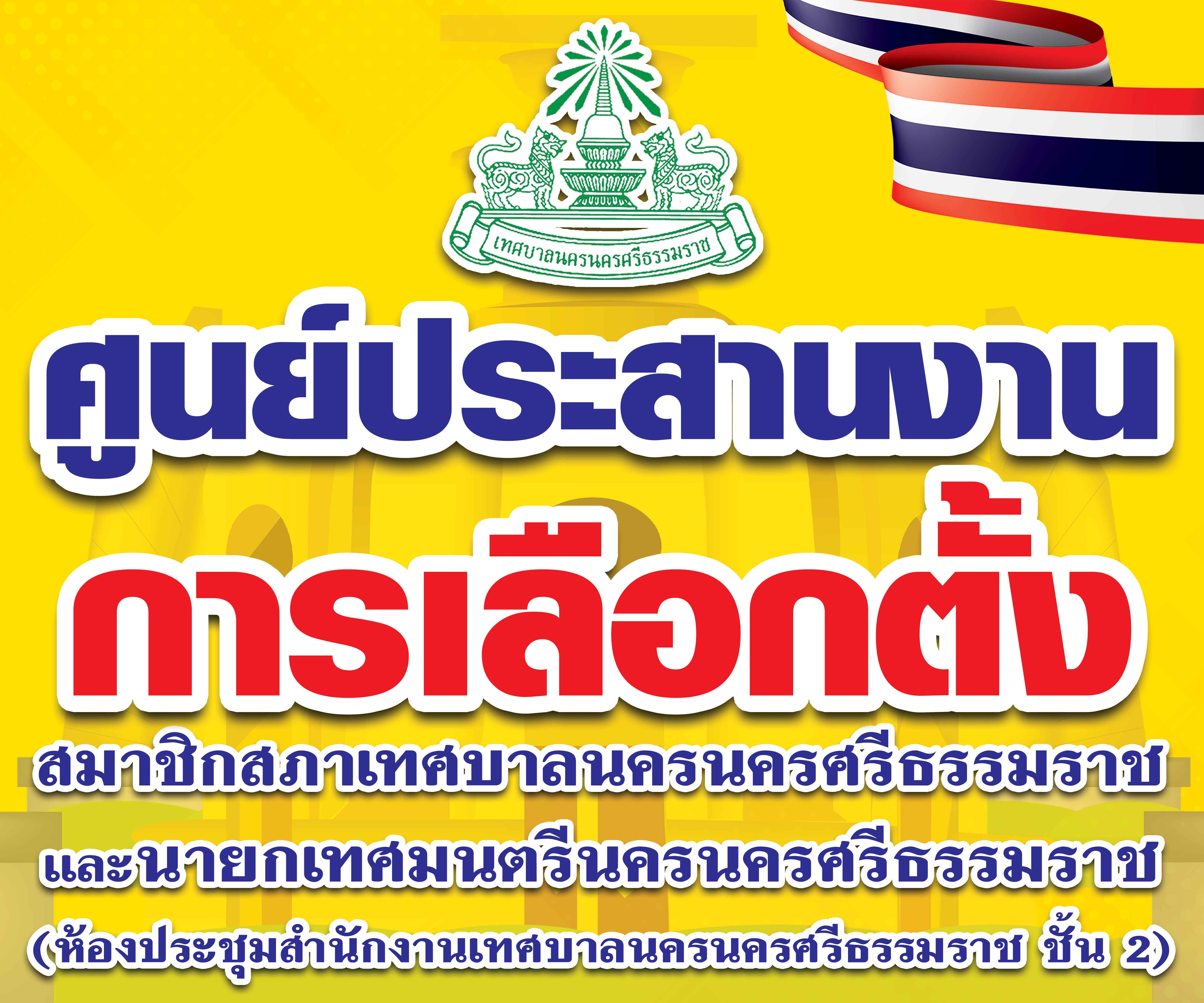 | เทศบาลนครนครศรีธรรมราช โดยสำนักปลัดเทศบาล จัดตั้งศูนย์ประสานงานการเลือกตั้ง สมาชิกสภาเทศบาลนครนครศรีธรรมราช และนายกเทศมนตรีนครนครศรีธรรมราช ณ ห้องประชุมสำนักงานเทศบาลนครนครศรีธรรมราช ( ชั้น 2 ) สอบถามรายละเอียด ได้ที่ สำนักงานเทศบาลนครนครศรีธรรมราช โทรศัพท์ 075-809-571 ต่อ 9158 |