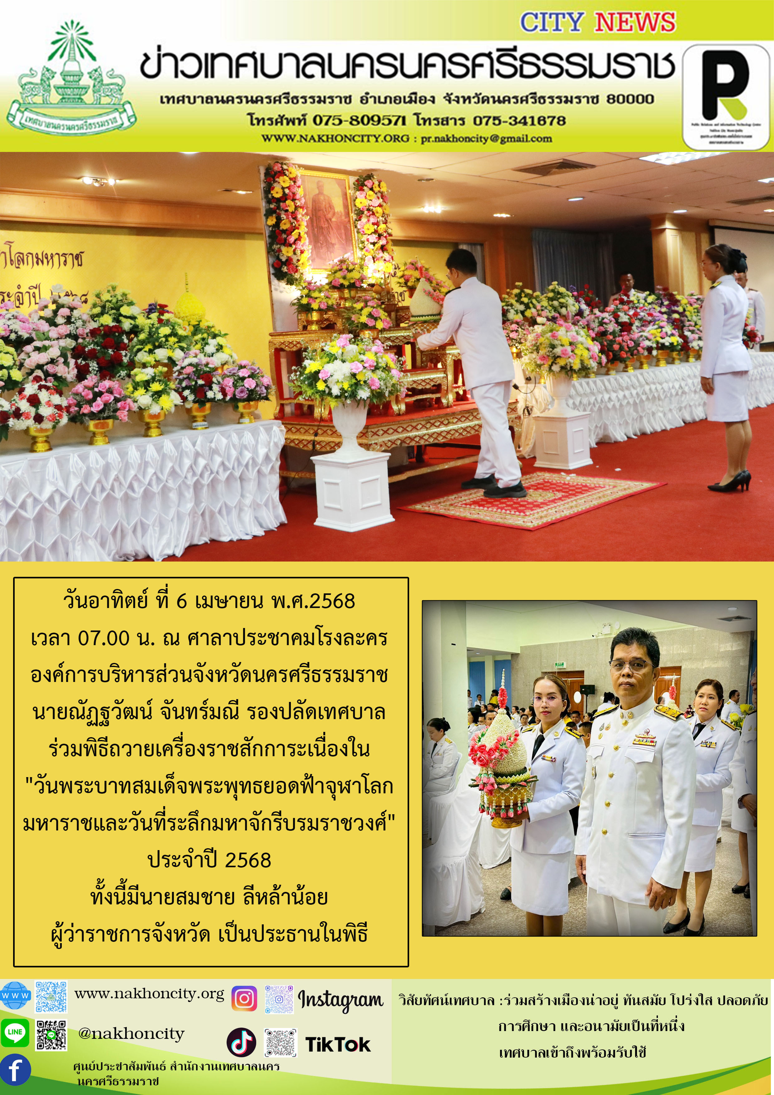 | วันอาทิตย์ ที่ 6 เมษายน พ.ศ.2568 เวลา 07.00 น. ณ ศาลาประชาคมโรงละคร องค์การบริหารส่วนจังหวัดนครศรีธรรมราช