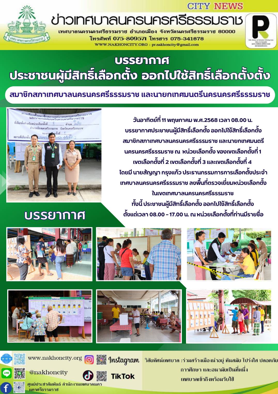 | บรรยากาศประชาชนผู้มีสิทธิ์เลือกตั้ง ออกไปใช้สิทธิ์เลือกตั้ง สมาชิกสภาเทศบาลนครนครศรีธรรมราช และนายกเทศมนตรีนครนครศรีธรรมราช |