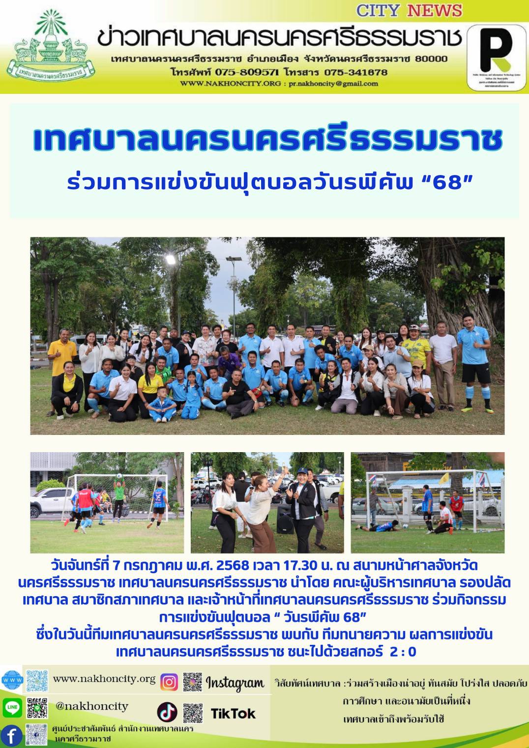 | เทศบาลนครนครศรีธรรมราช ร่วมกิจกรรม การแข่งขันฟุตบอล “ วันรพีคัพ 68” |
