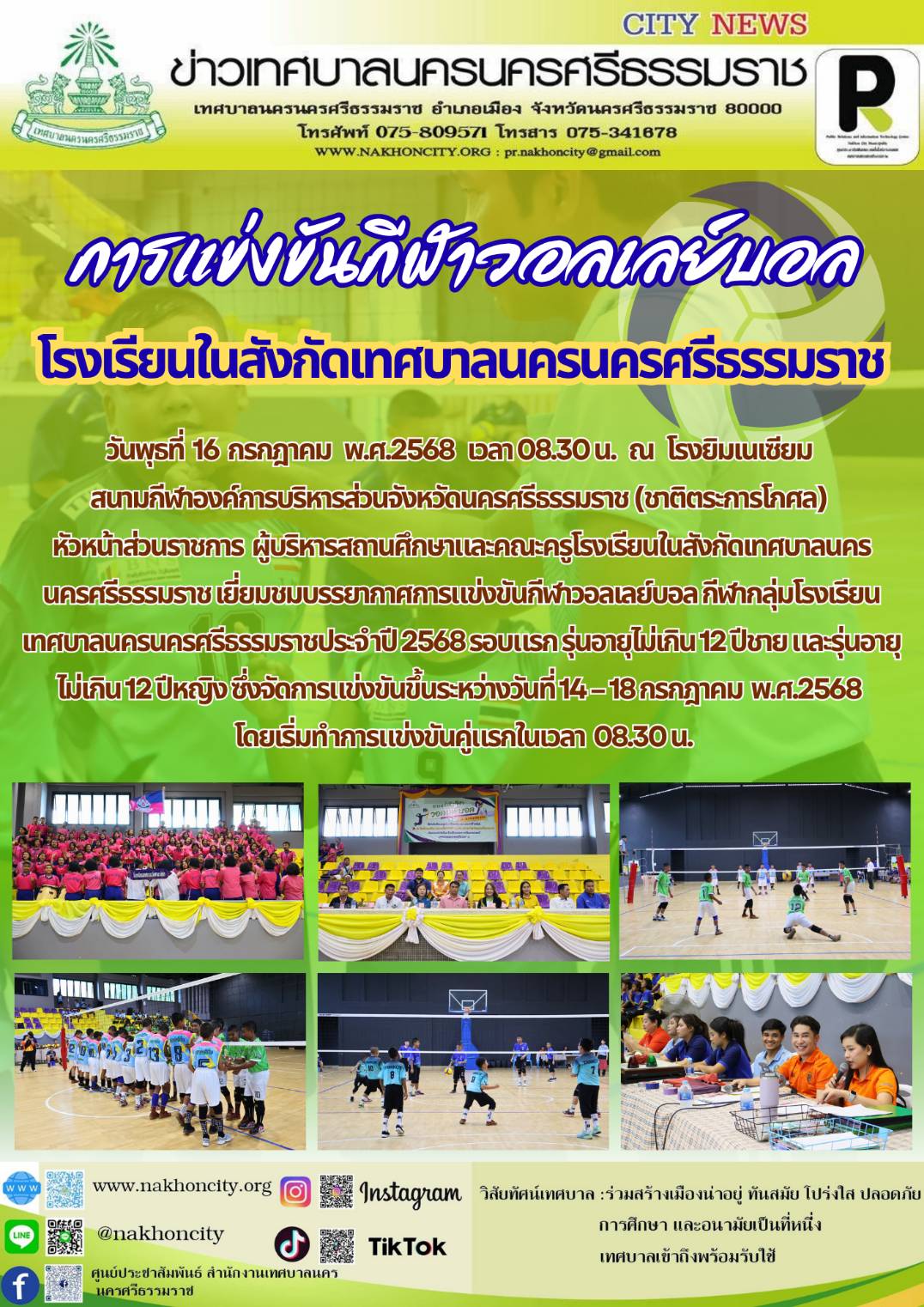 | เทศบาลนครนครศรีธรรมราช จัดการแข่งขันกีฬาวอลเลย์บอล กีฬากลุ่มโรงเรียนเทศบาลนครนครศรีธรรมราชประจำปี 2568 |