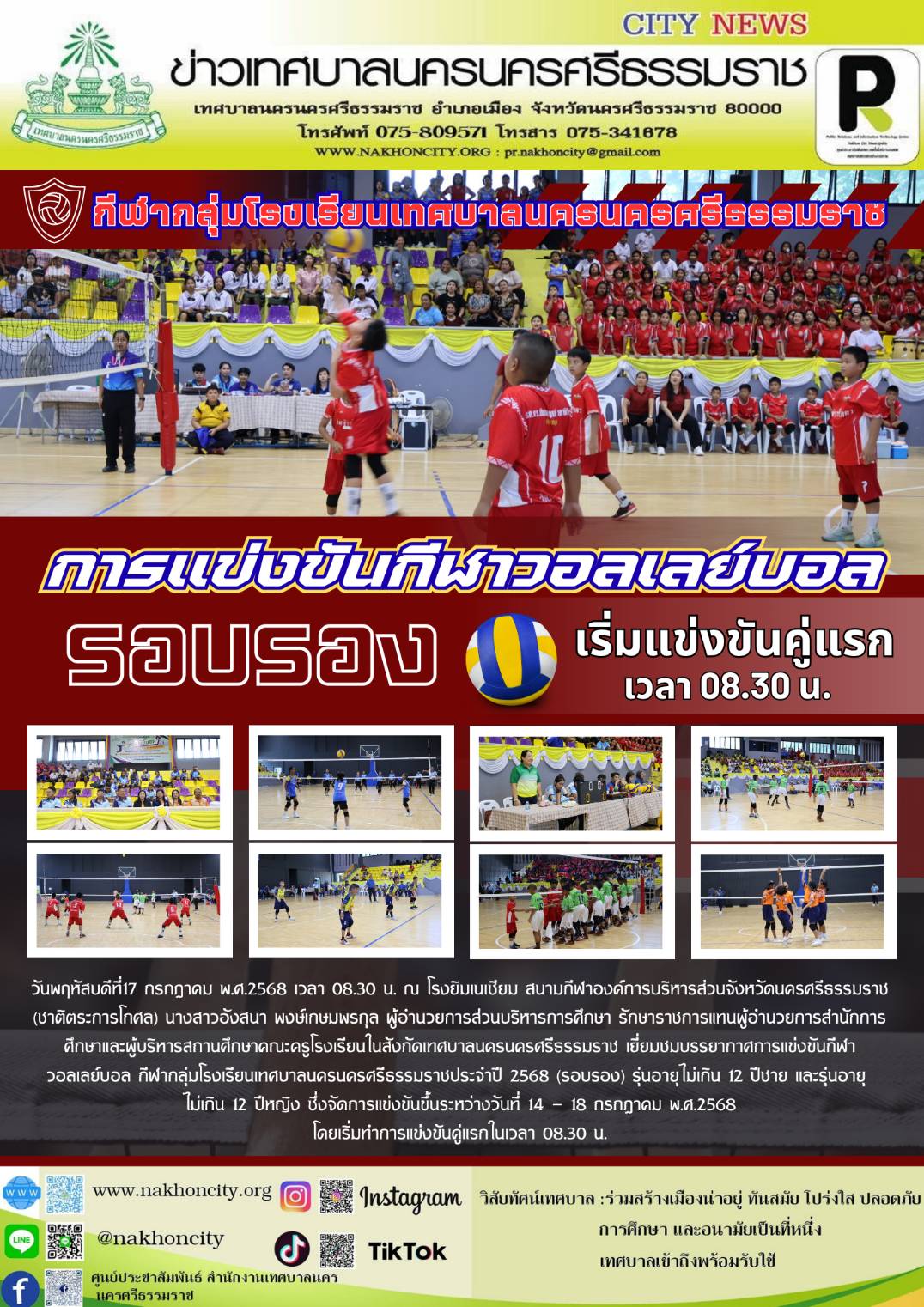 | เทศบาลนครนครศรีธรรมราช จัดการแข่งขันกีฬาวอลเลย์บอล กีฬากลุ่มโรงเรียนเทศบาลนครนครศรีธรรมราชประจำปี 2568 (รอบรอง) |