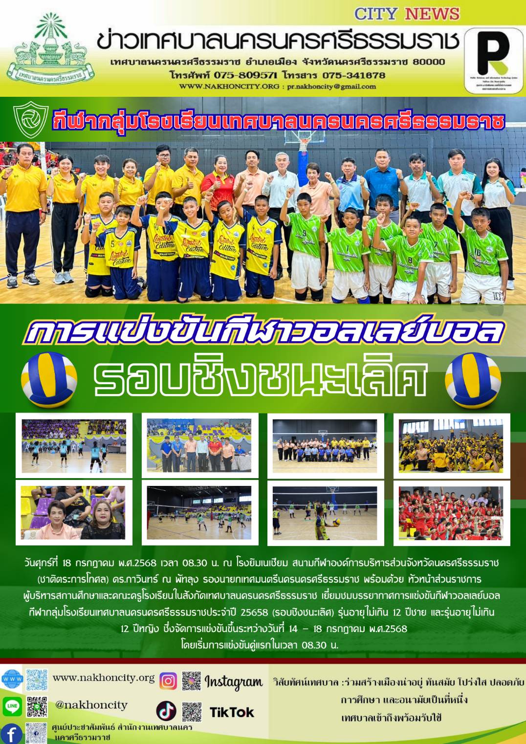 | ดร.ภาวินทร์ ณ พัทลุง รองนายกเทศมนตรีนครนครศรีธรรมราช เยี่ยมชมบรรยากาศการแข่งขันกีฬาวอลเลย์บอล กีฬากลุ่มโรงเรียนเทศบาลนครนครศรีธรรมราช ประจำปี 25658 |