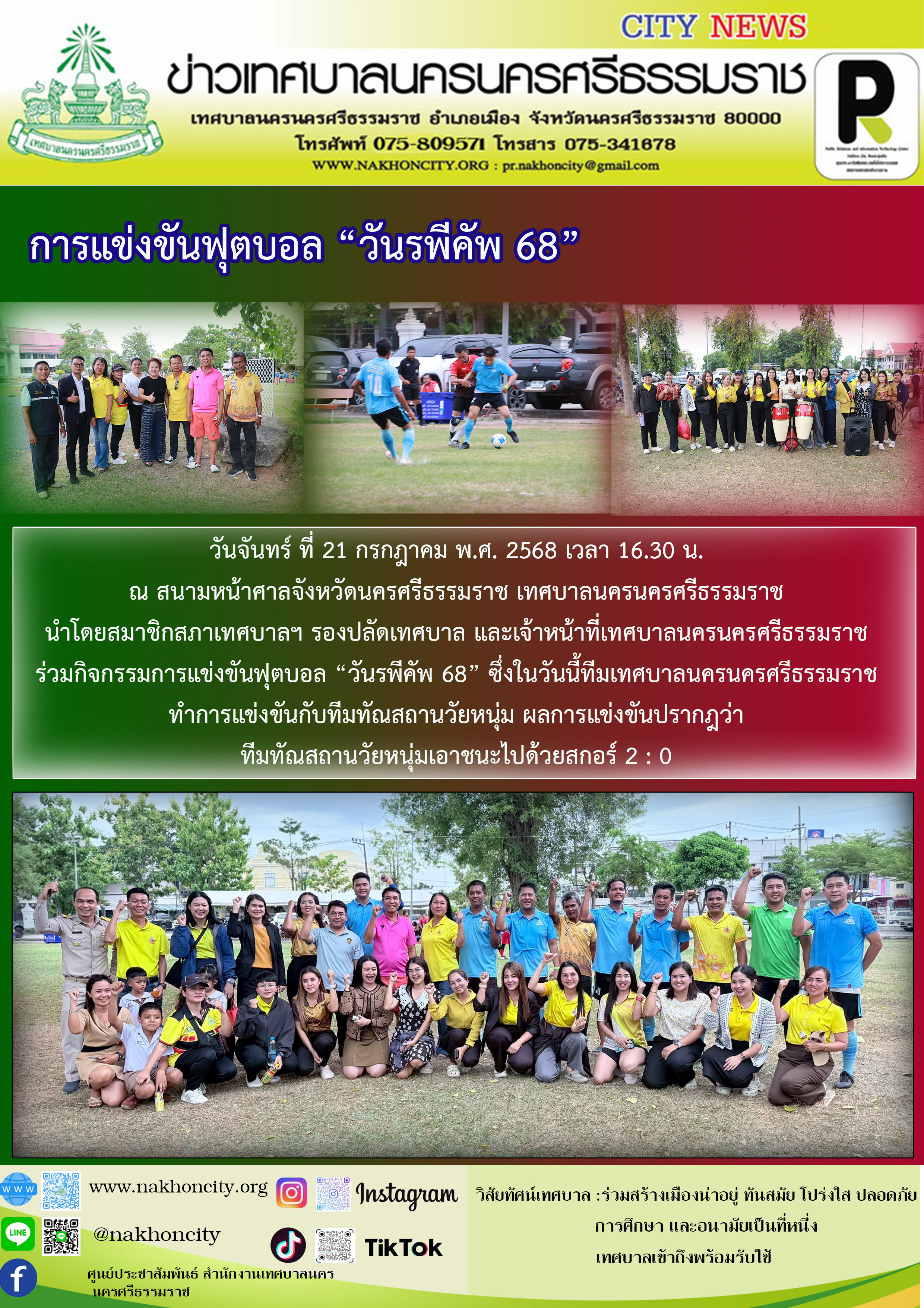 | เทศบาลนครนครศรีธรรมราช ร่วมกิจกรรมการแข่งขันฟุตบอล “วันรพีคัพ 68” |