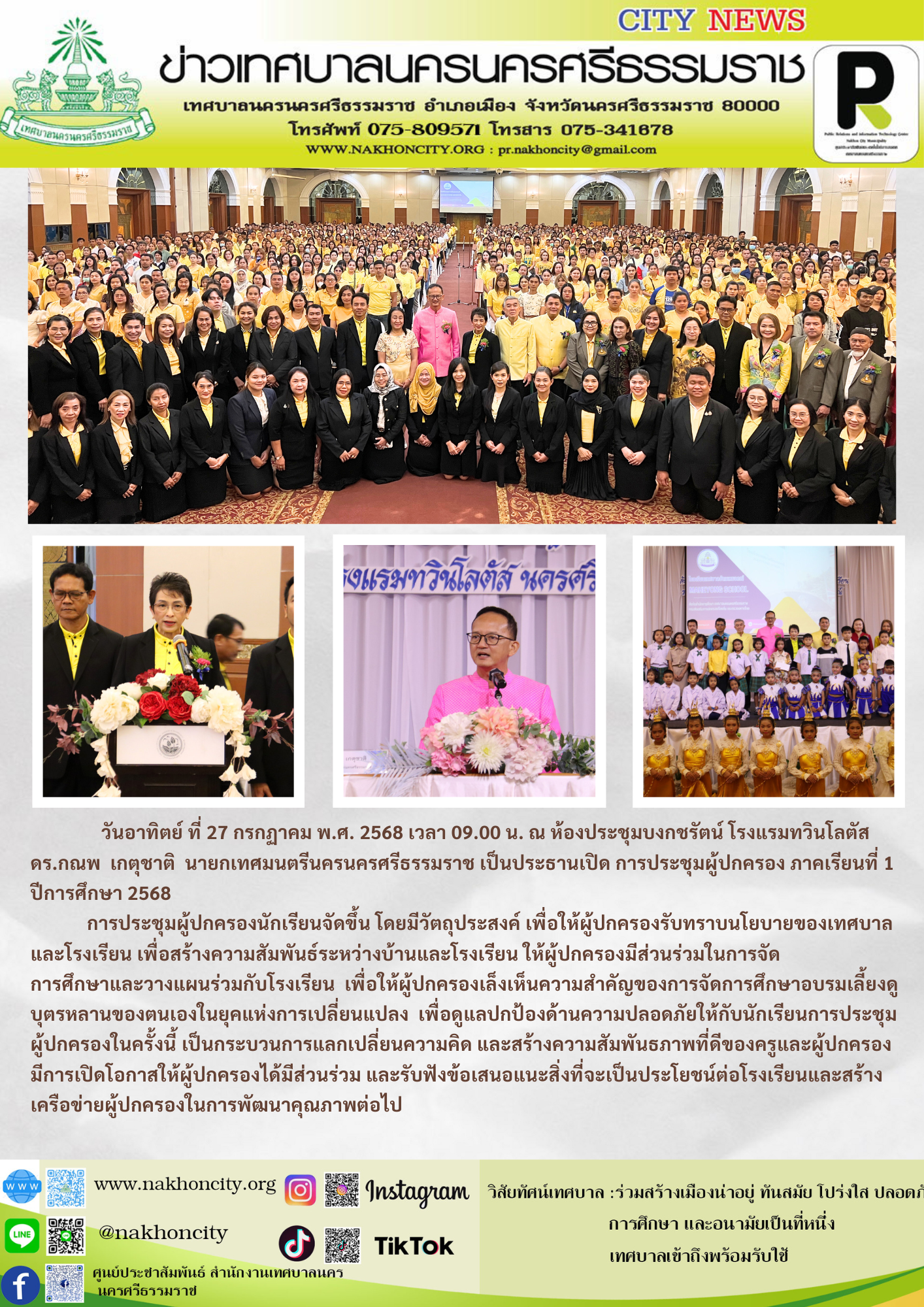 | ดร.กณพ เกตุชาติ นายกเทศมนตรีนครนครศรีธรรมราช เป็นประธานเปิด การประชุมผู้ปกครอง ภาคเรียนที่ 1 ปีการศึกษา 2568 |