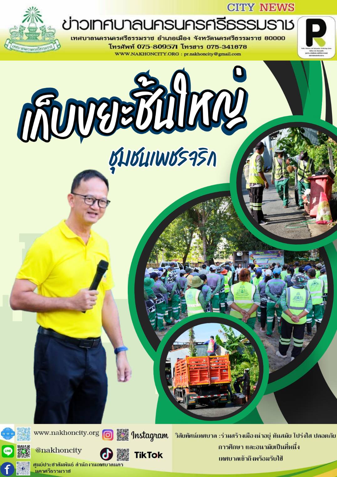 | วันศุกร์ที่ 1 สิงหาคม พ.ศ.2568 เวลา 08.00 น. ณ วัดสวนหลวง ดร.กณพ เกตุชาติ นายกเทศมนตรีนครนครศรีธรรมราช ร่วมพบปะพูดคุย และปล่อยแถว เจ้าหน้าที่กองสาธารณสุขและสิ่งแวดล้อม  ในการลงพื้นที่ชุมชนเพชรจริก พื้นที่เขต 1 เก็บขยะชิ้นใหญ่ สิ่งของชำรุด เศษวัสดุ เก็บกวาดขยะ ฉีดล้างถนน  ตลอดพื้นที่ โดยมีประชาชนในชุมชนให้ความร่วมมือนำเศษวัสดุ สิ่งของชำรุด และขยะชิ้นใหญ่มาวางหน้าบ้านของตัวเอง   |