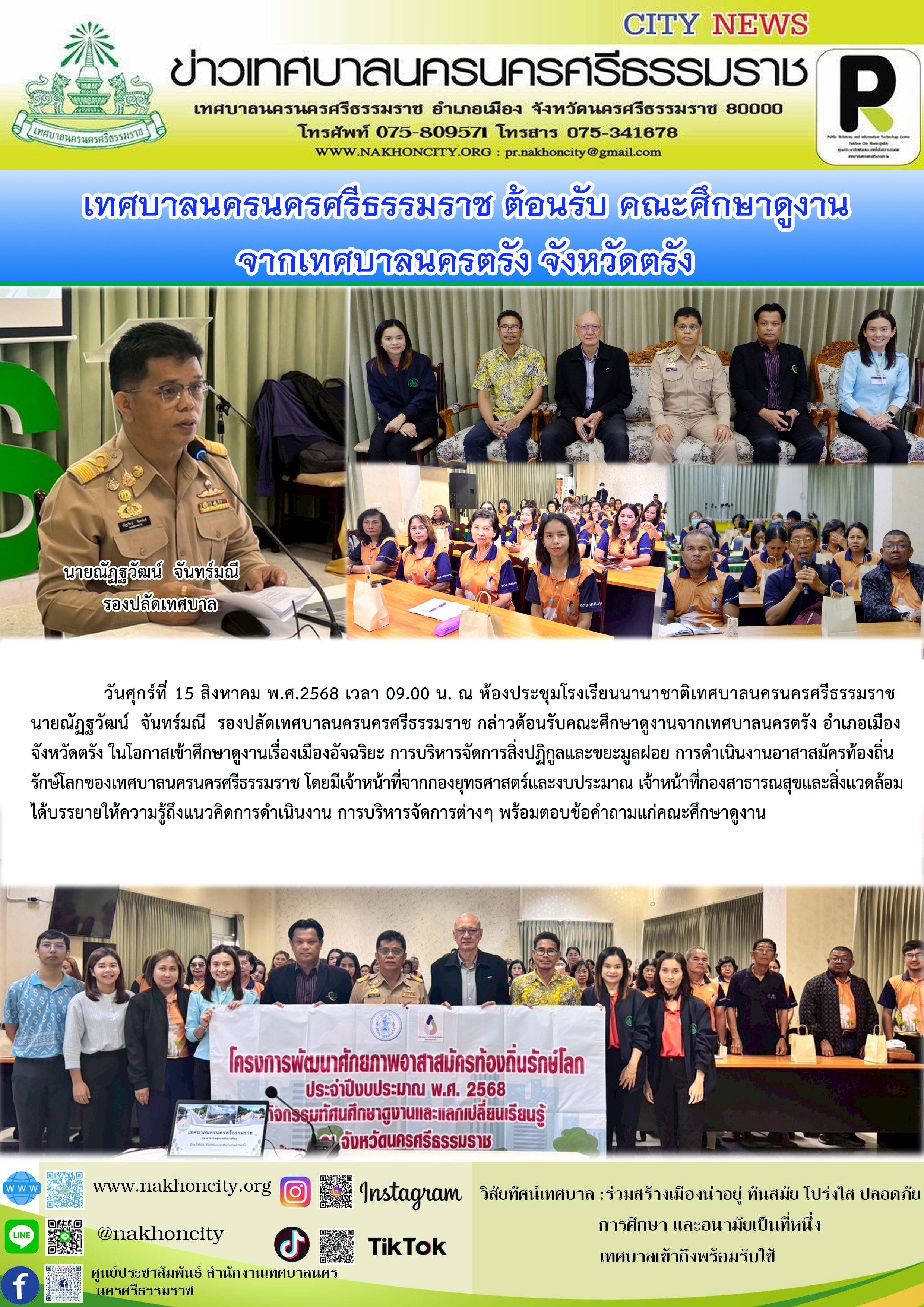 | เทศบาลนครนครศรีธรรมราช ต้อนรับ คณะศึกษาดูงานจากเทศบาลนครตรัง จังหวัดตรัง |