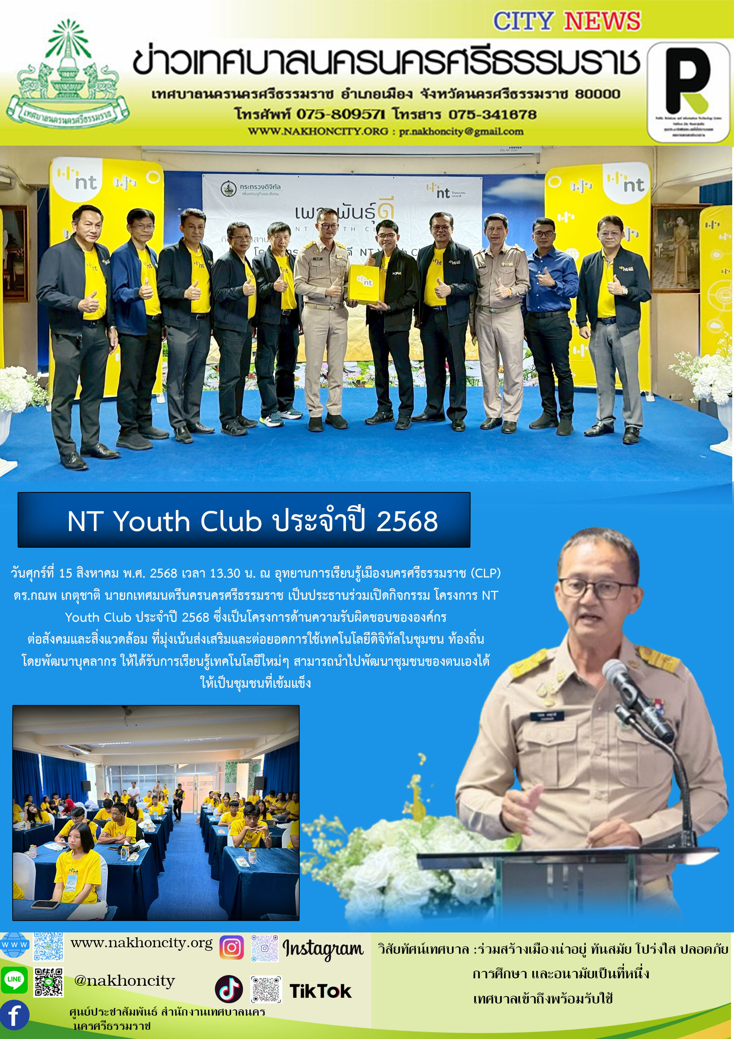 | นายกเทศมนตรีนครนครศรีธรรมราช เป็นประธานร่วมเปิดกิจกรรม โครงการ NT Youth Club ประจำปี 2568 |