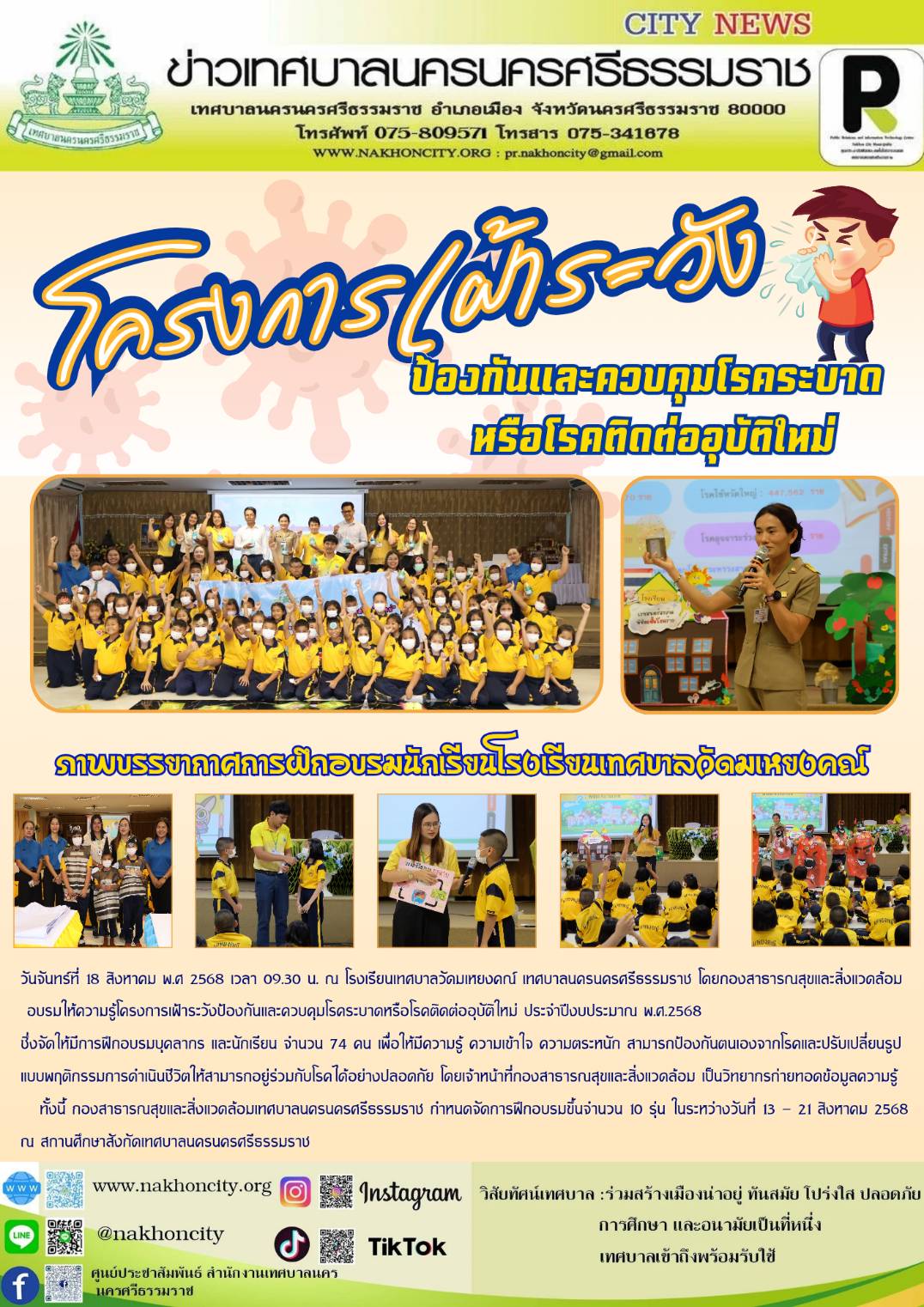 | เจ้าหน้าที่กองสาธารณสุขและสิ่งแวดล้อม อบรมให้ความรู้โครงการเฝ้าระวังป้องกันและควบคุมโรคระบาดหรือโรคติดต่ออุบัติใหม่ โรงเรียนเทศบาลวัดท้าวโคตร |