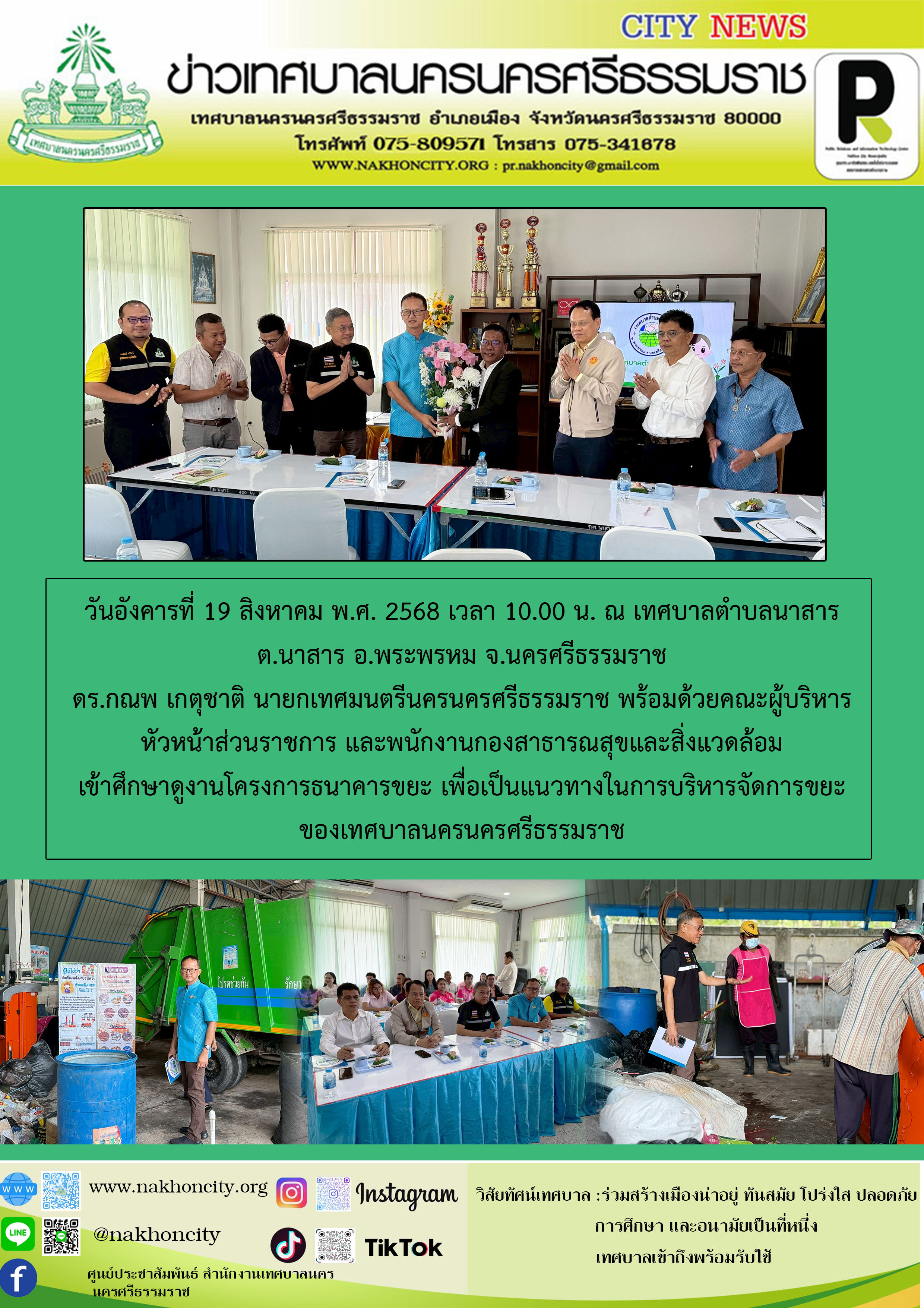 | วันอังคารที่ 19 สิงหาคม พ.ศ. 2568 เวลา 10.00 น. ณ เทศบาลตำบลนาสาร ต.นาสาร อ.พระพรหม จ.นครศรีธรรมราช
