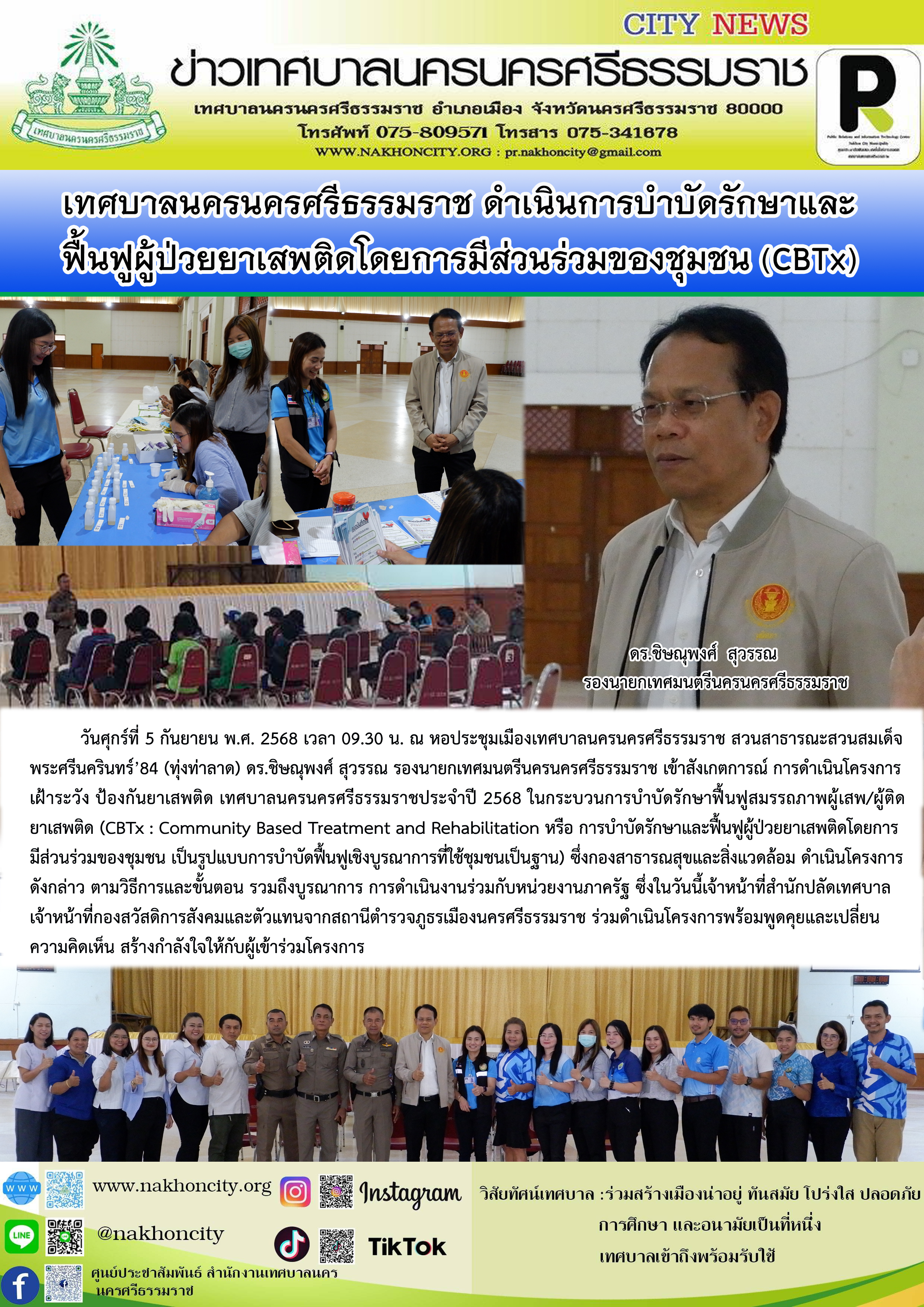 | เทศบาลนครนครศรีธรรมราช ดำเนินการบำบัดรักษาและฟื้นฟูผู้ป่วยยาเสพติดโดยการมีส่วนร่วมของชุมชน (CBTx) |