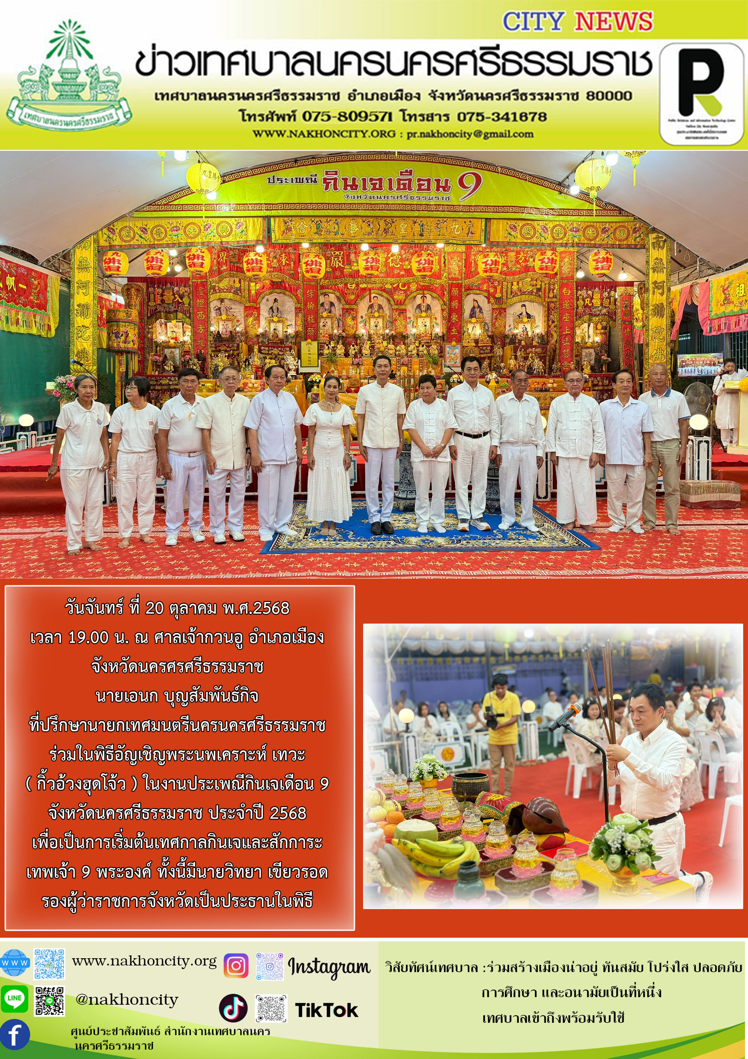 ที่ปรึกษานายกเทศมนตรีนครนครศรีธรรมราช ร่วมในพิธีอัญเชิญพระนพเคราะห์ เทวะ ( กิ้วอ้วงฮุดโจ้ว ) ในงานประเพณีกินเจเดือน 9 จังหวัดนครศรีธรรมราช ประจำปี 2568