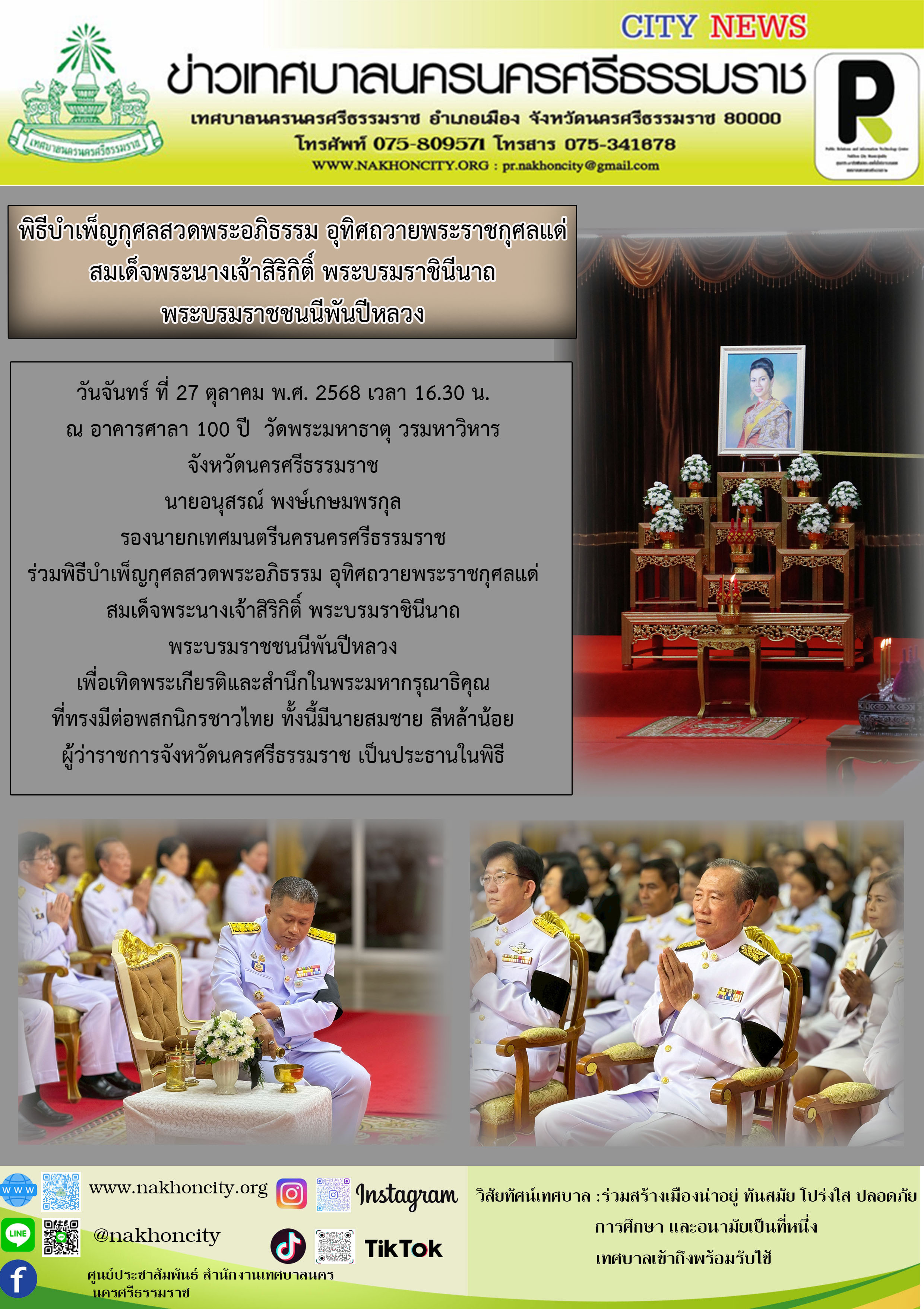 | วันจันทร์ ที่ 27 ตุลาคม พ.ศ. 2568 เวลา 16.30 น. ณ อาคารศาลา 100 ปี  วัดพระมหาธาตุ วรมหาวิหาร จังหวัดนครศรีธรรมราช