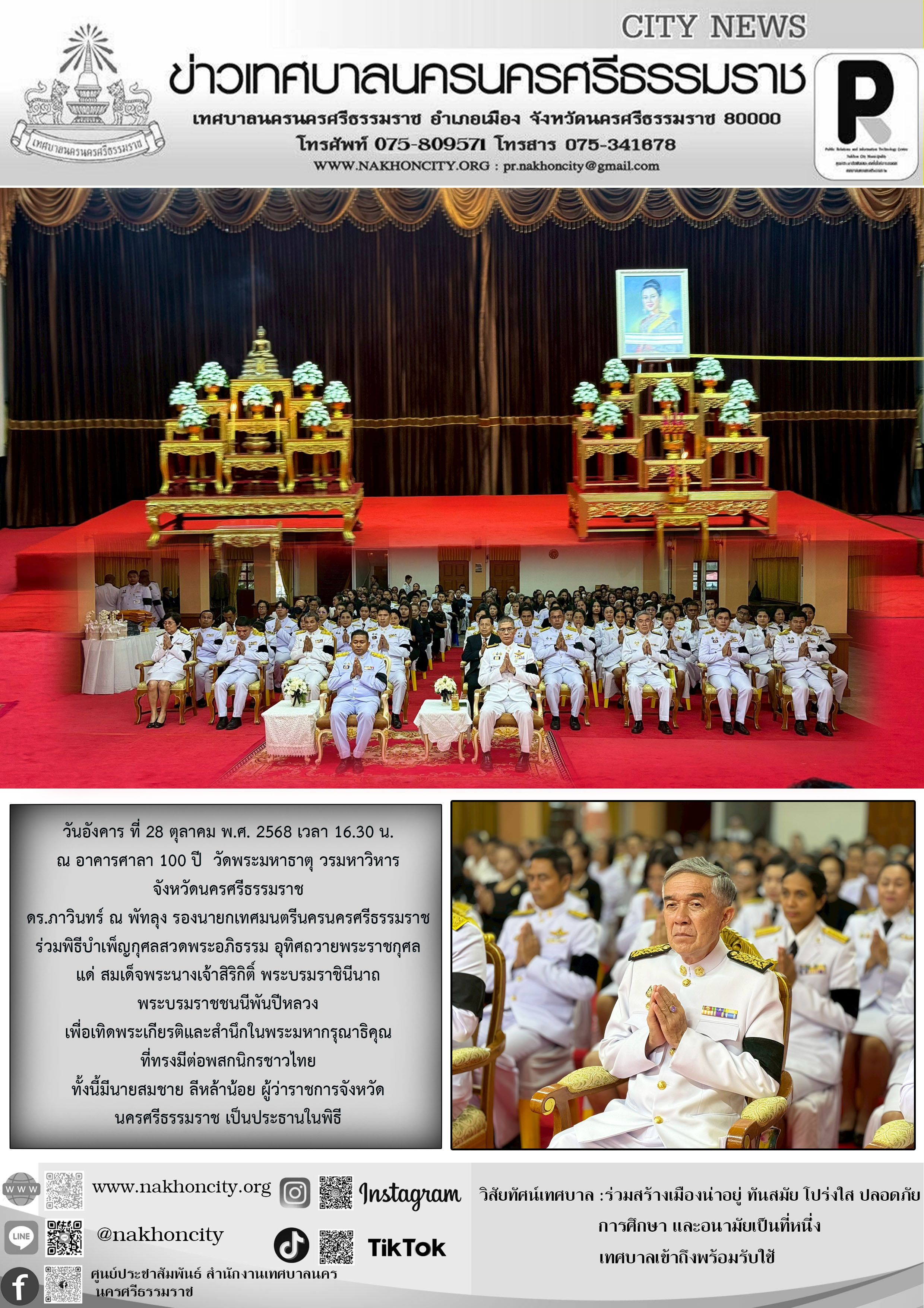 | วันอังคาร ที่ 28 ตุลาคม พ.ศ. 2568 เวลา 16.30 น. ณ อาคารศาลา 100 ปี  วัดพระมหาธาตุ วรมหาวิหาร จังหวัดนครศรีธรรมราช
